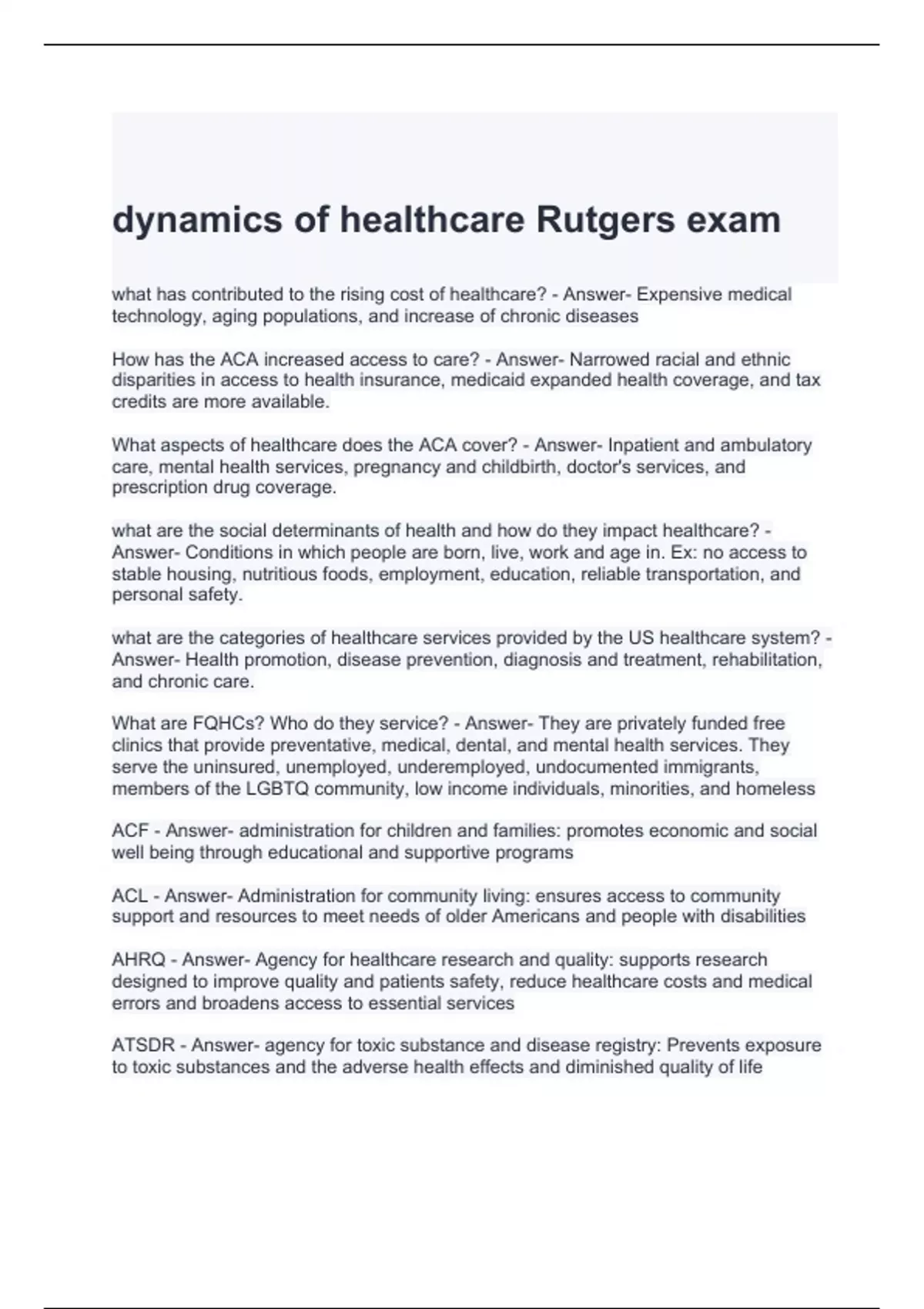 dynamics of healthcare Rutgers exam