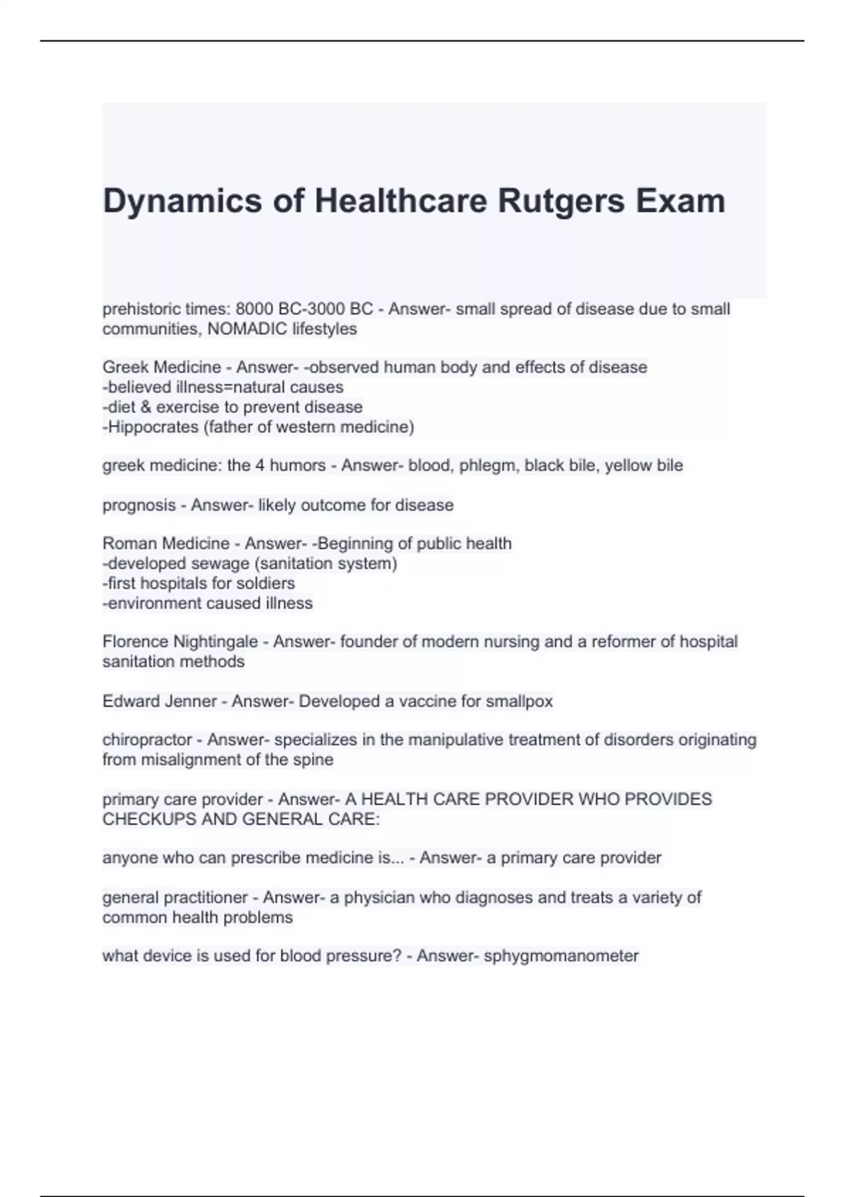 Dynamics of Healthcare Rutgers Exam Questions and Answers Graded A