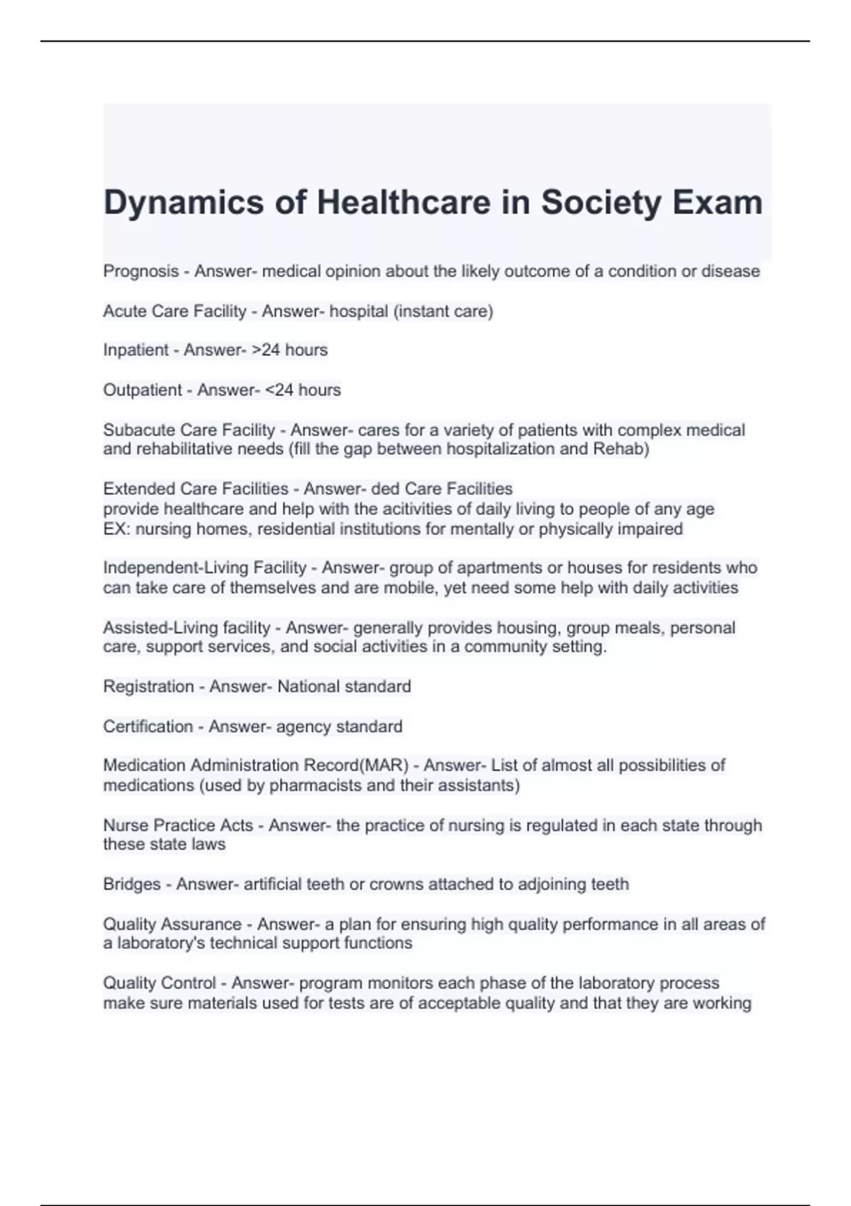 Dynamics of Healthcare in Society Exam Questions and Answers 2024