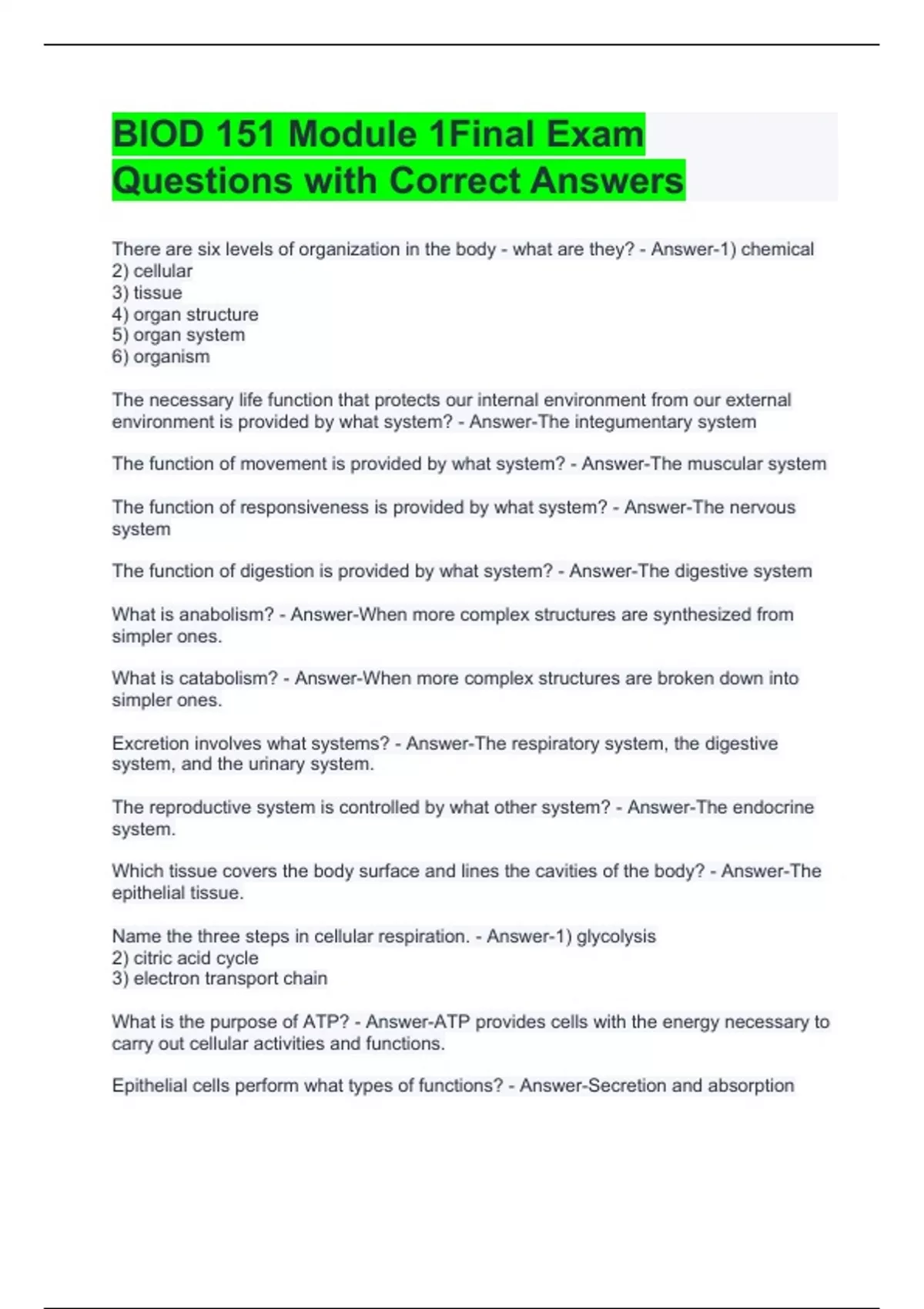 BIOD 151 Module 1Final Exam Questions with Correct Answers
