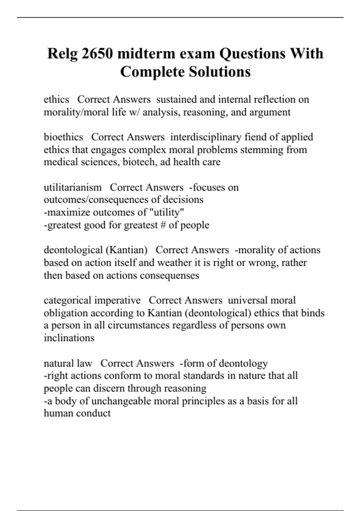 relg 2650 midterm exam questions with complete sol