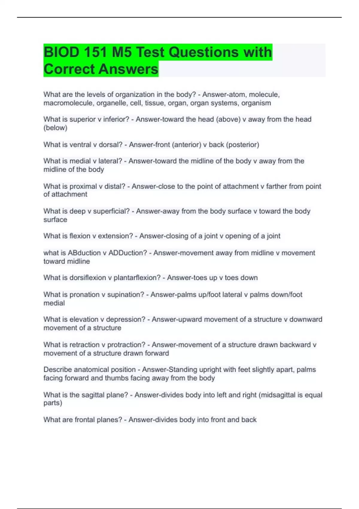 biod 151 m5 test questions with correct answers