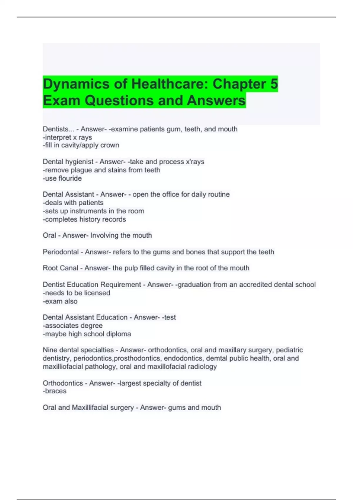 Dynamics of Healthcare Chapter 5 Exam Questions and Answers