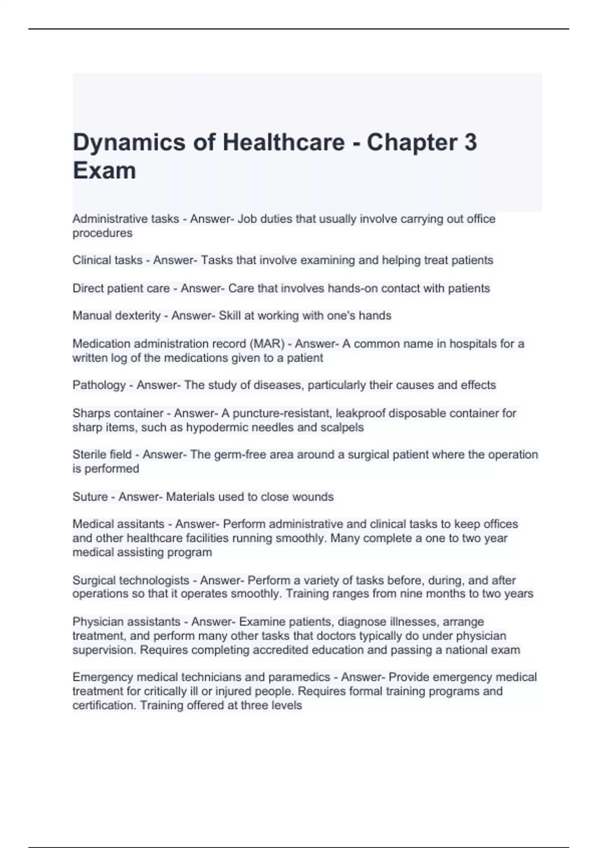 Dynamics of Healthcare - Chapter 3 Exam Questions and Answers / Graded A