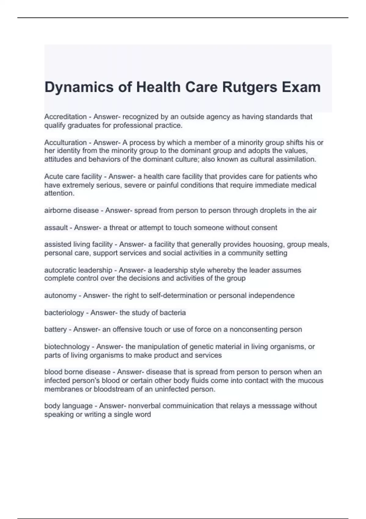 Dynamics of Health Care Rutgers Exam 2024 Questions and Answers