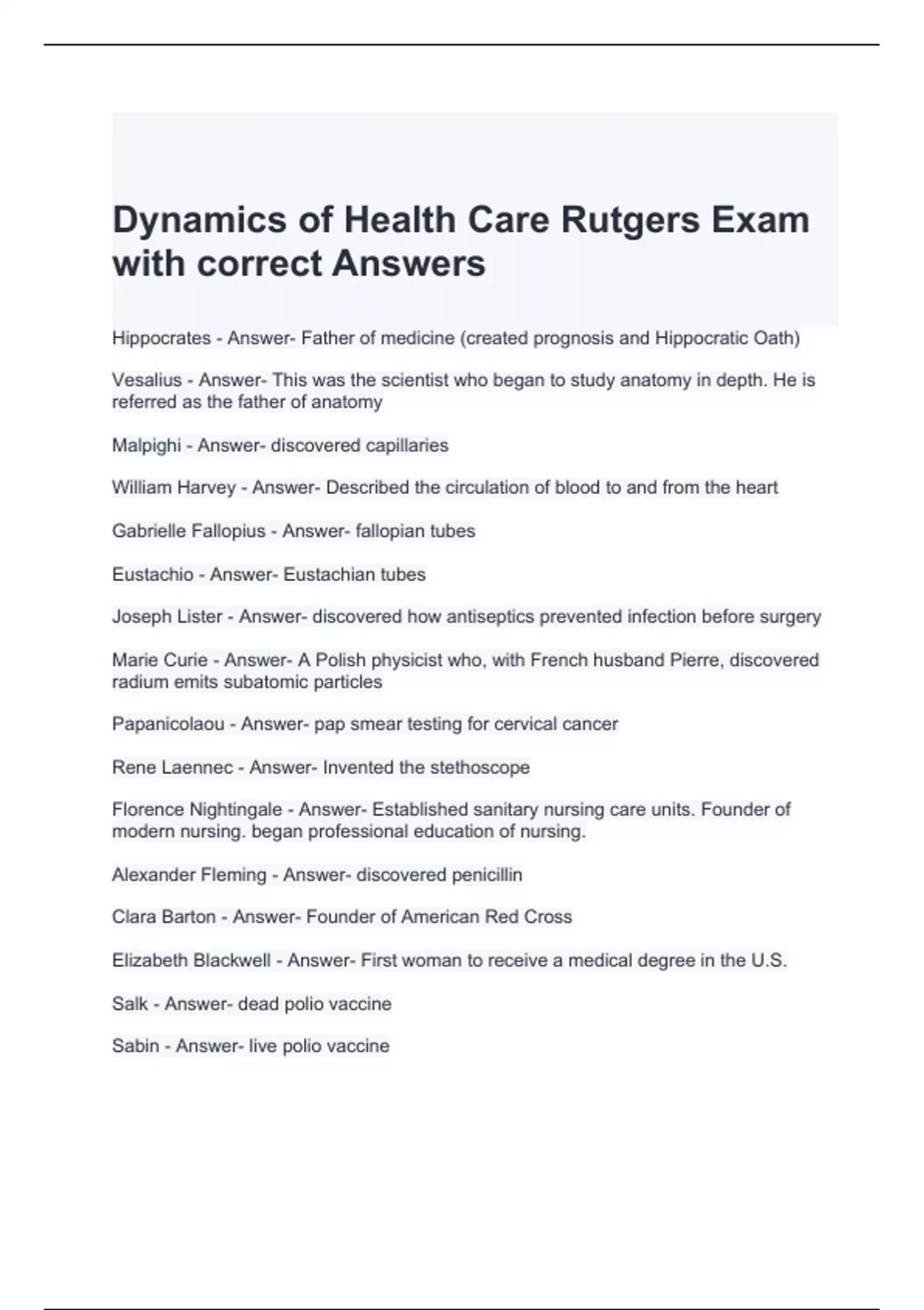 Dynamics of Health Care Rutgers Exam with correct Answers