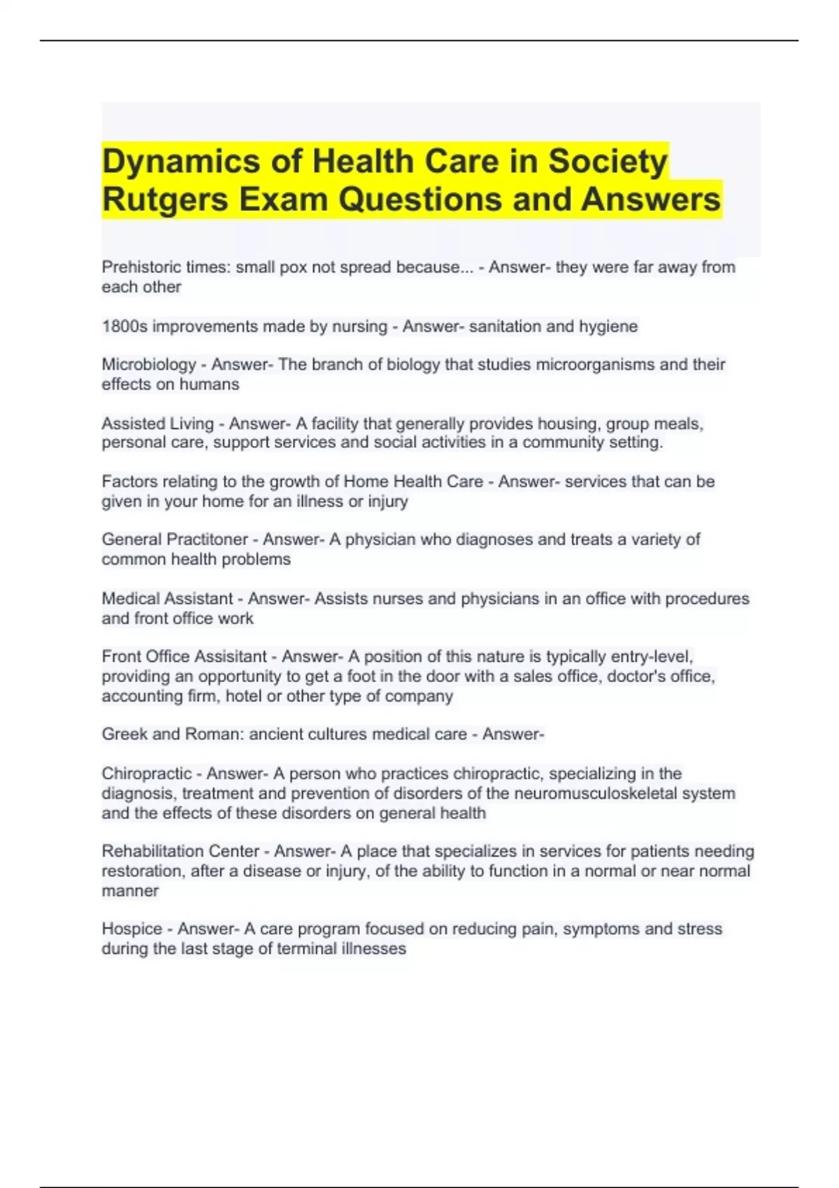 Dynamics of Health Care in Society Rutgers Exam Questions and Answers
