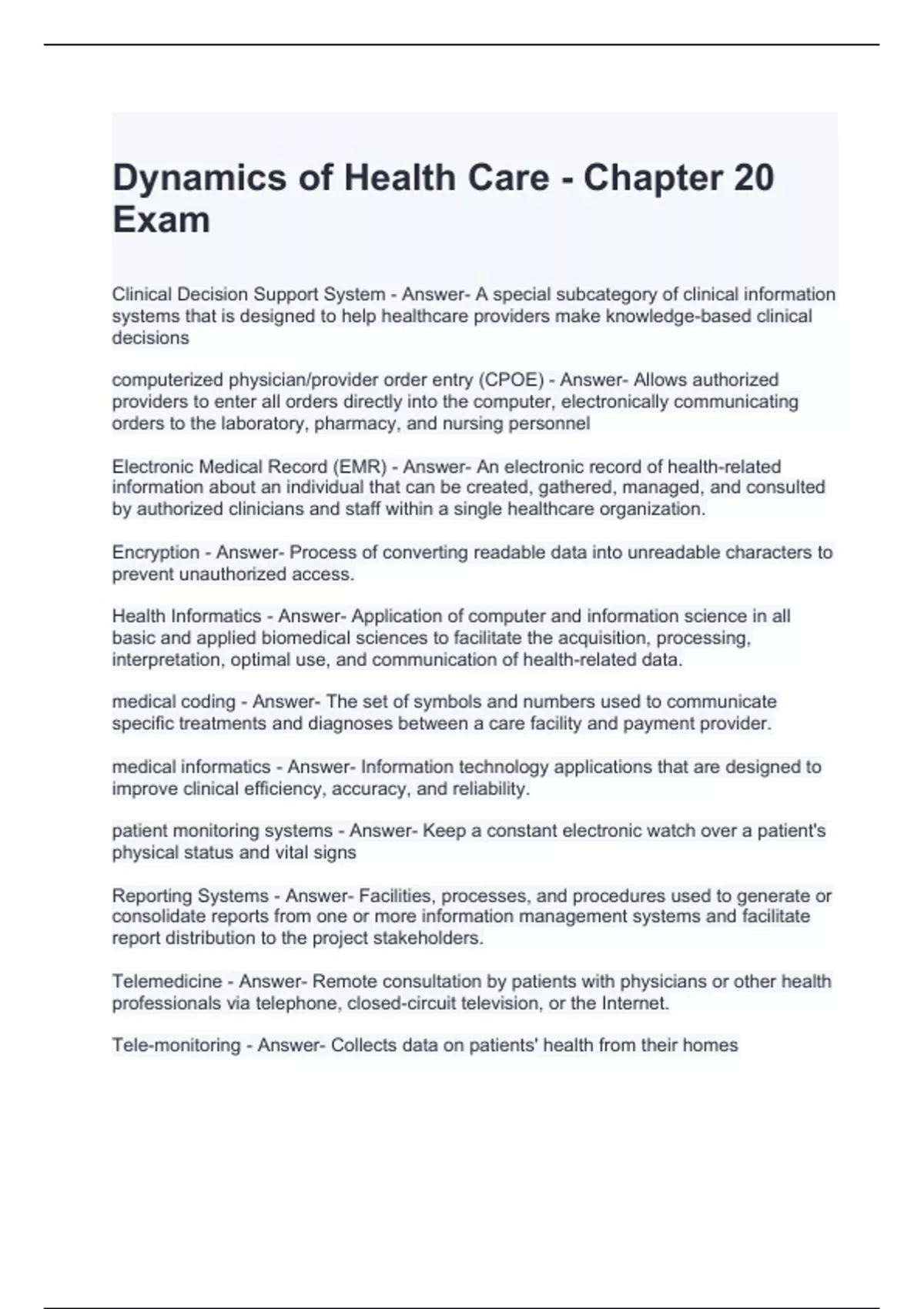 Dynamics of Health Care - Chapter 20 Exam Questions and Answers 2024