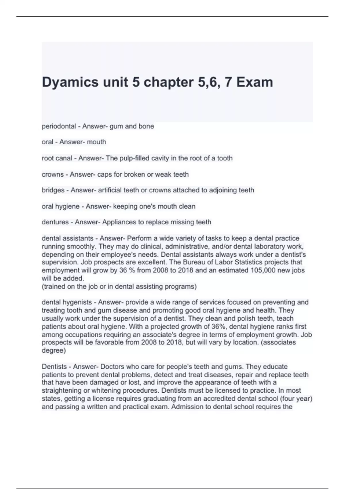 Dyamics unit 5 chapter 5,6, 7 Exam 2024 Questions Answers