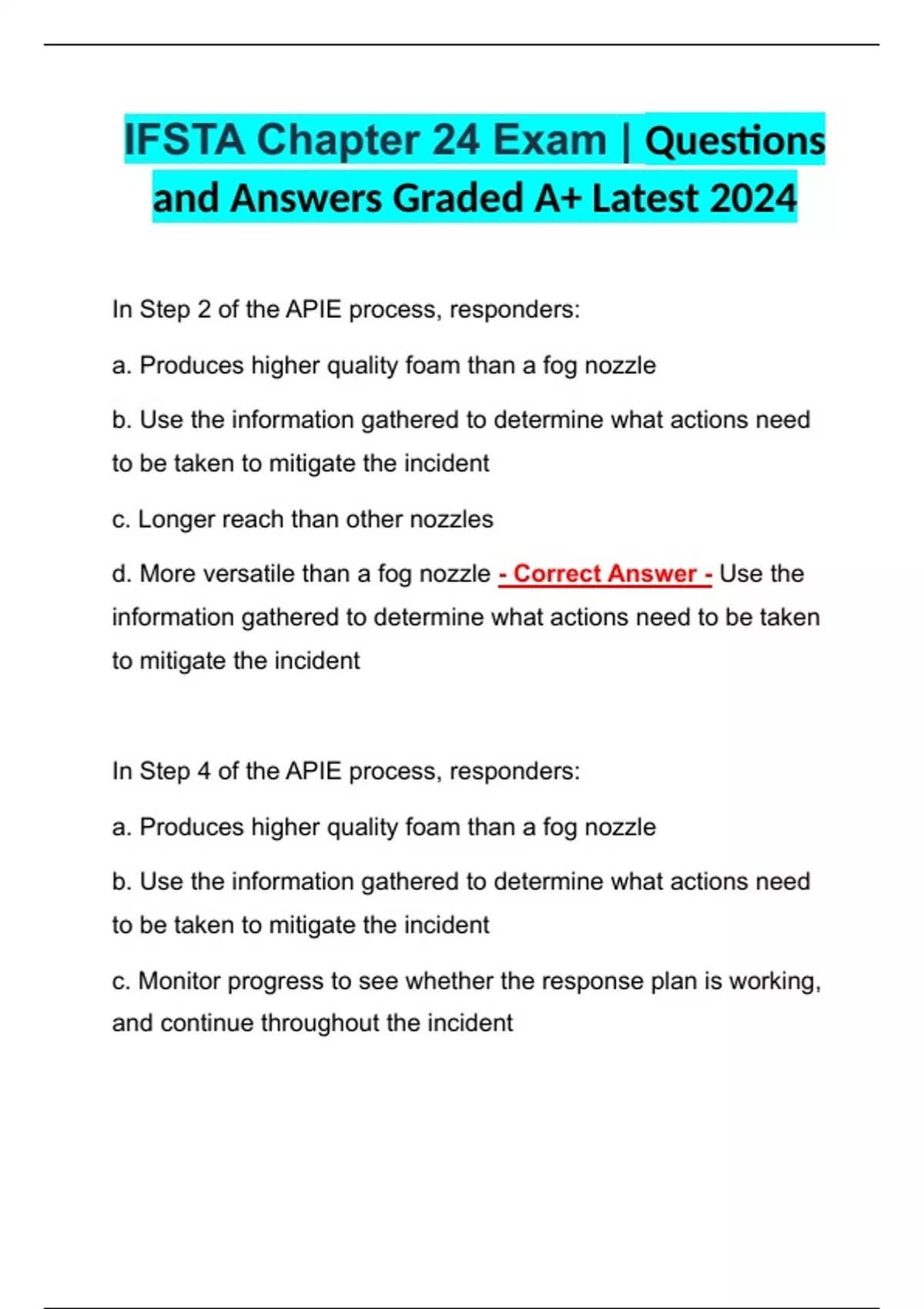 ifsta chapter 24 exam questions and answers grad
