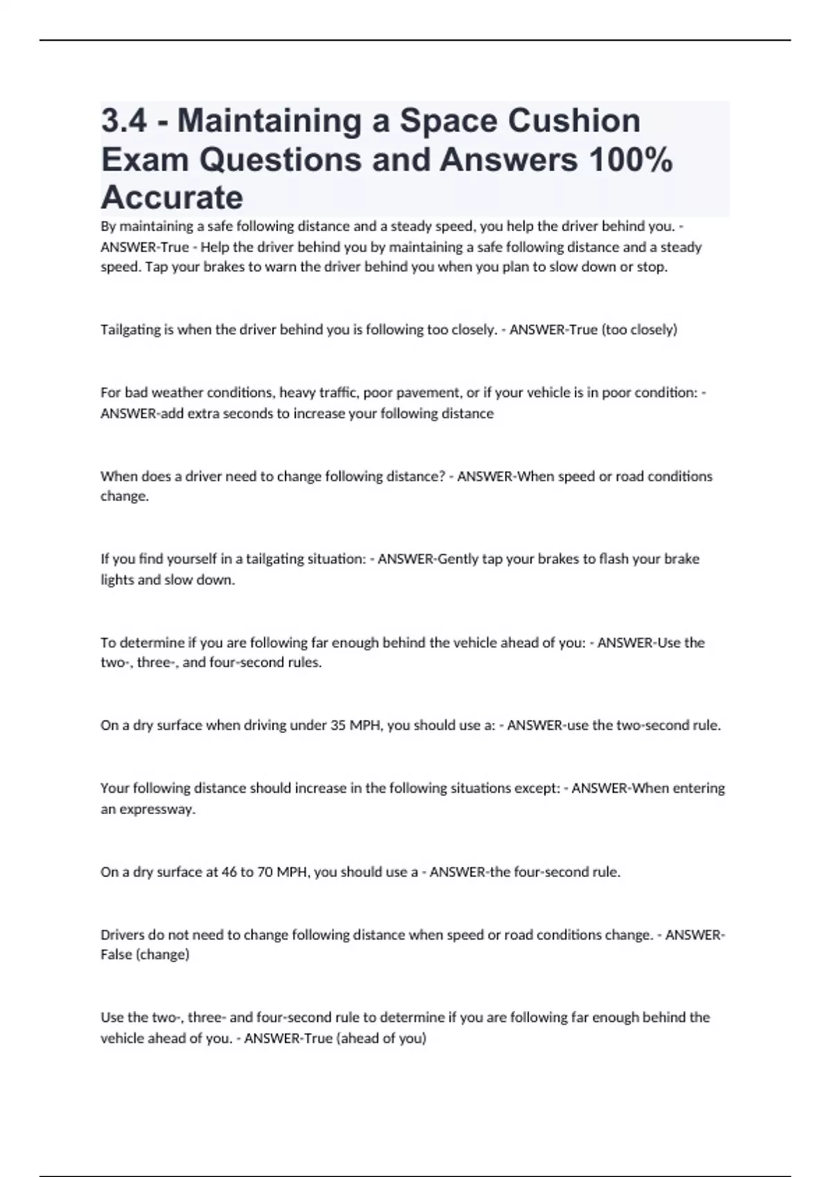 3.4 - Maintaining a Space Cushion Exam Questions and Answers 100% Accurate