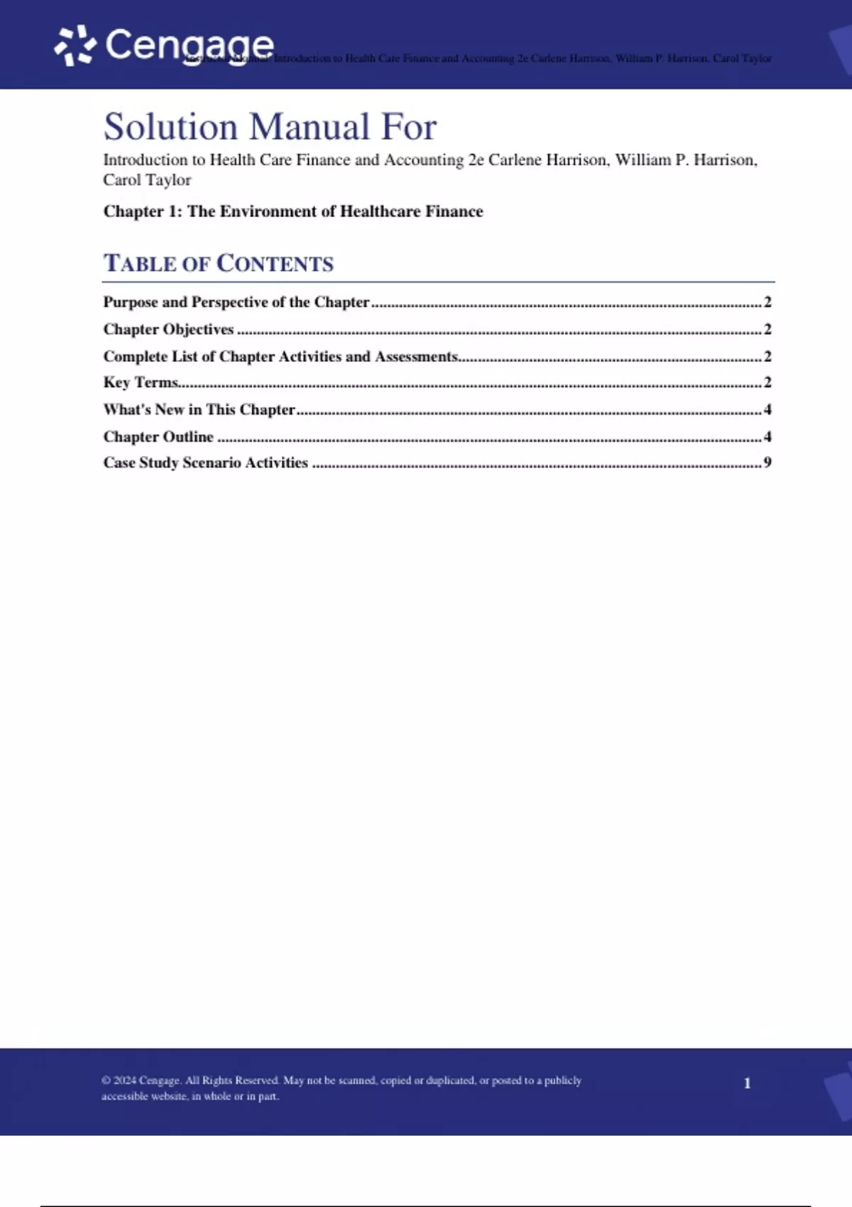 Solution Manual For Introduction to Health Care Finance and Accounting 2th Edition Carlene Harrison, William P. Harrison, Carol Taylor