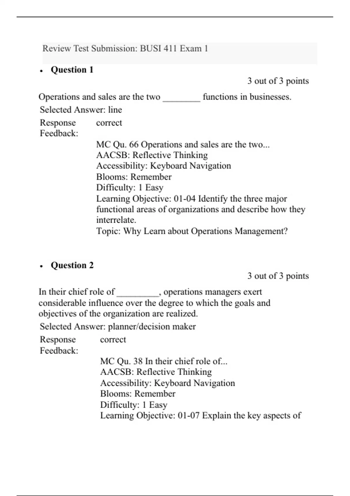 BUSI 411 Exam 1 (Version 1), BUSI 411 OPERATIONS MANAGEMENT, Liberty University. Best Document for exam.