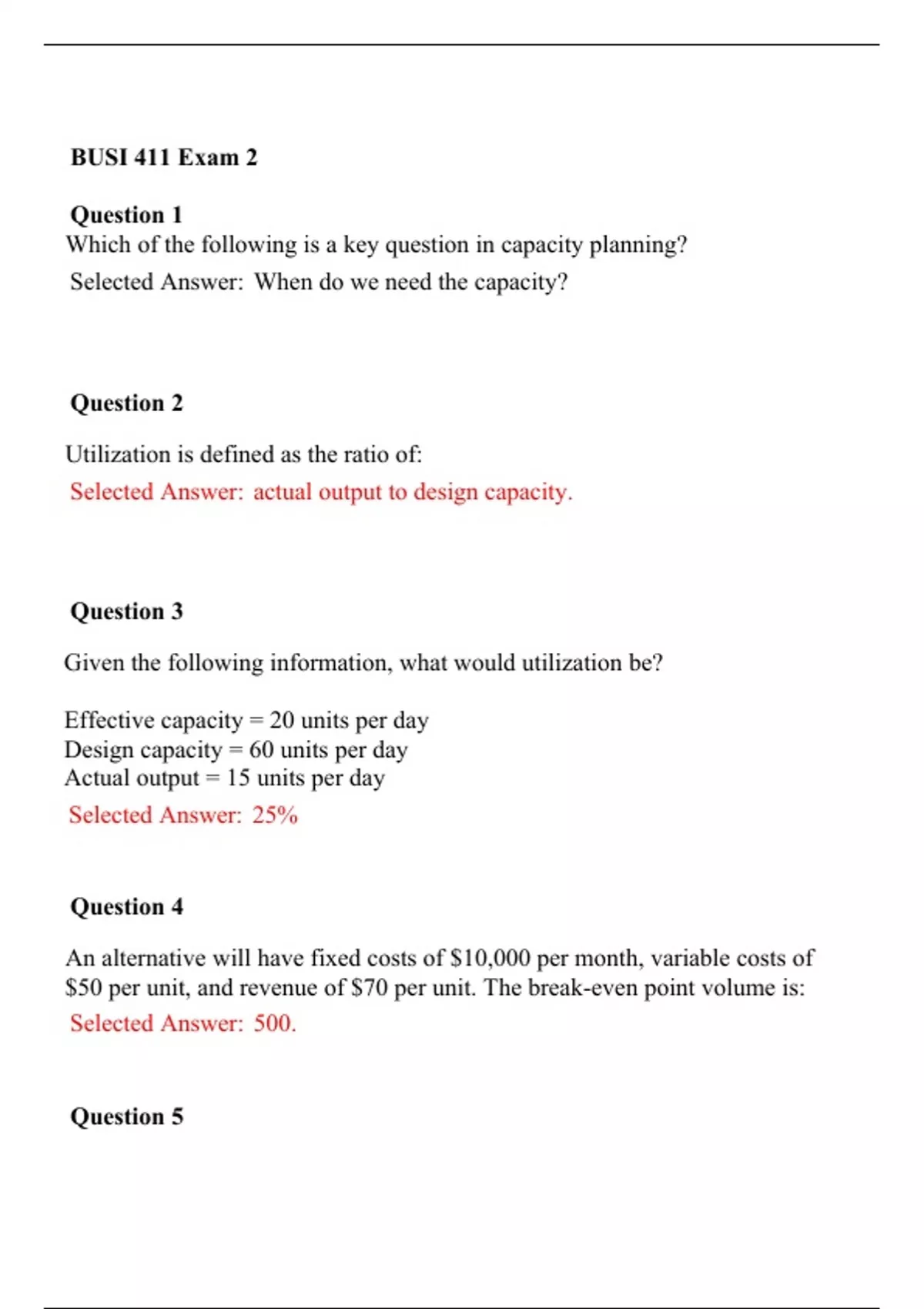 BUSI 411 Exam 2 (Version 1), BUSI 411 OPERATIONS MANAGEMENT, Liberty University. Best Document for exam.