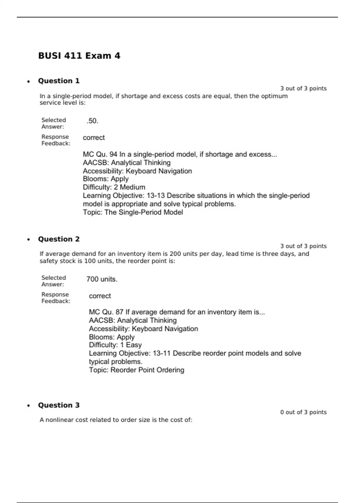 BUSI 411 Exam 4 (Version 2), BUSI 411 OPERATIONS MANAGEMENT, Liberty University. Best Document for exam.
