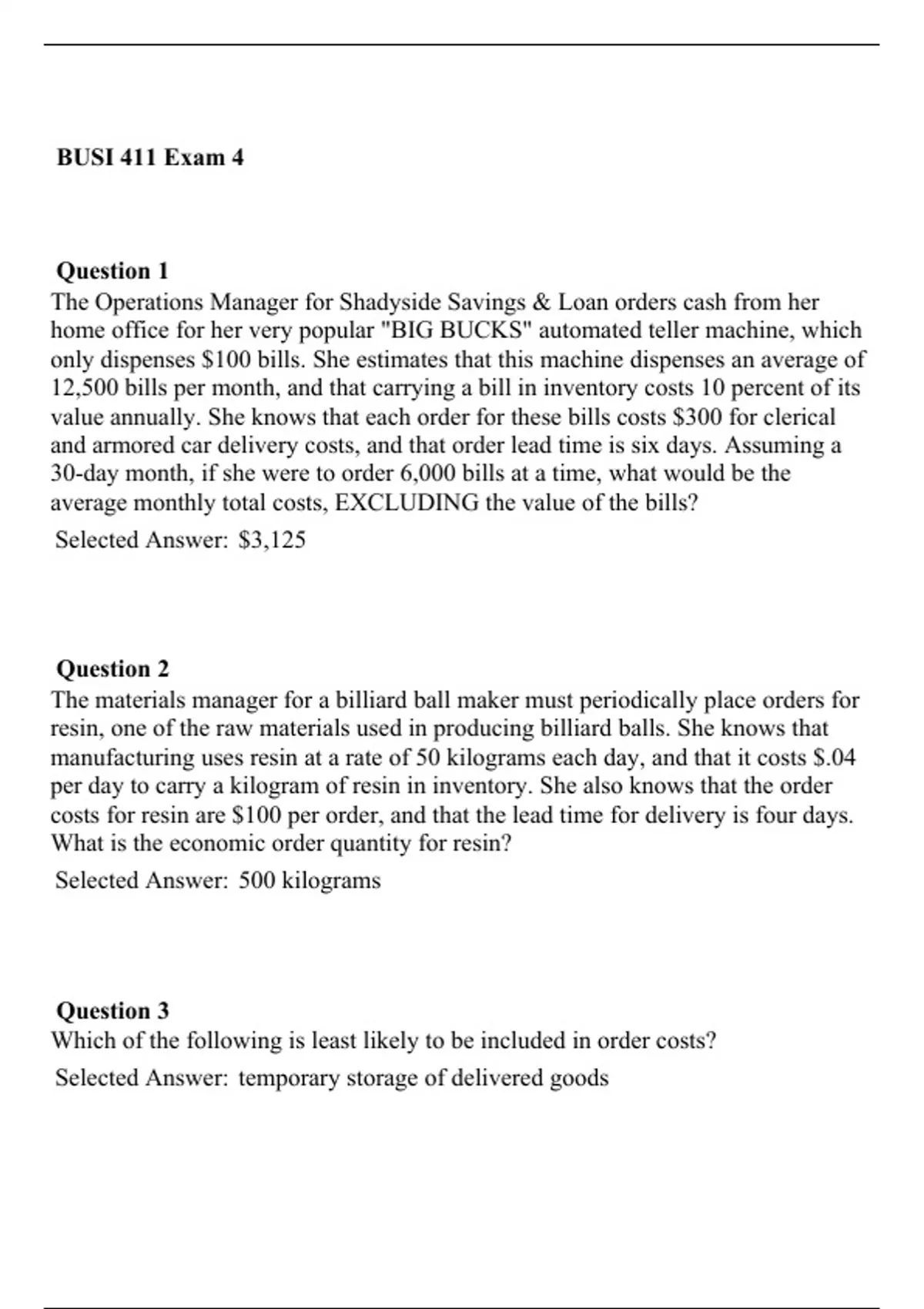 BUSI 411 Exam 4 (Version 1), BUSI 411 OPERATIONS MANAGEMENT, Liberty University. Best Document for exam.