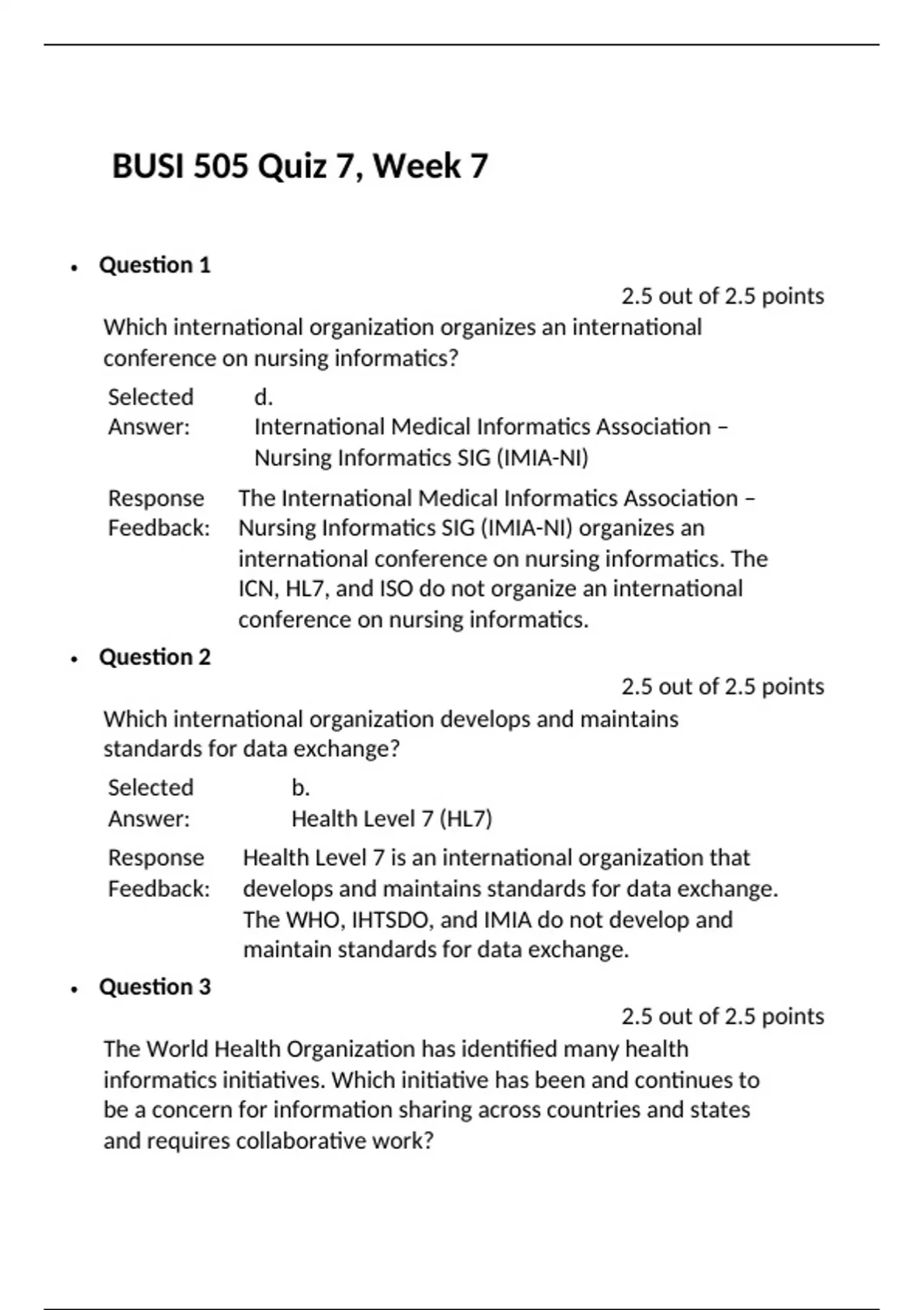 BUSI 505 Quiz 7 (4 Versions), BUSI 505 HEALTH CARE INFORMATICS, Liberty University.