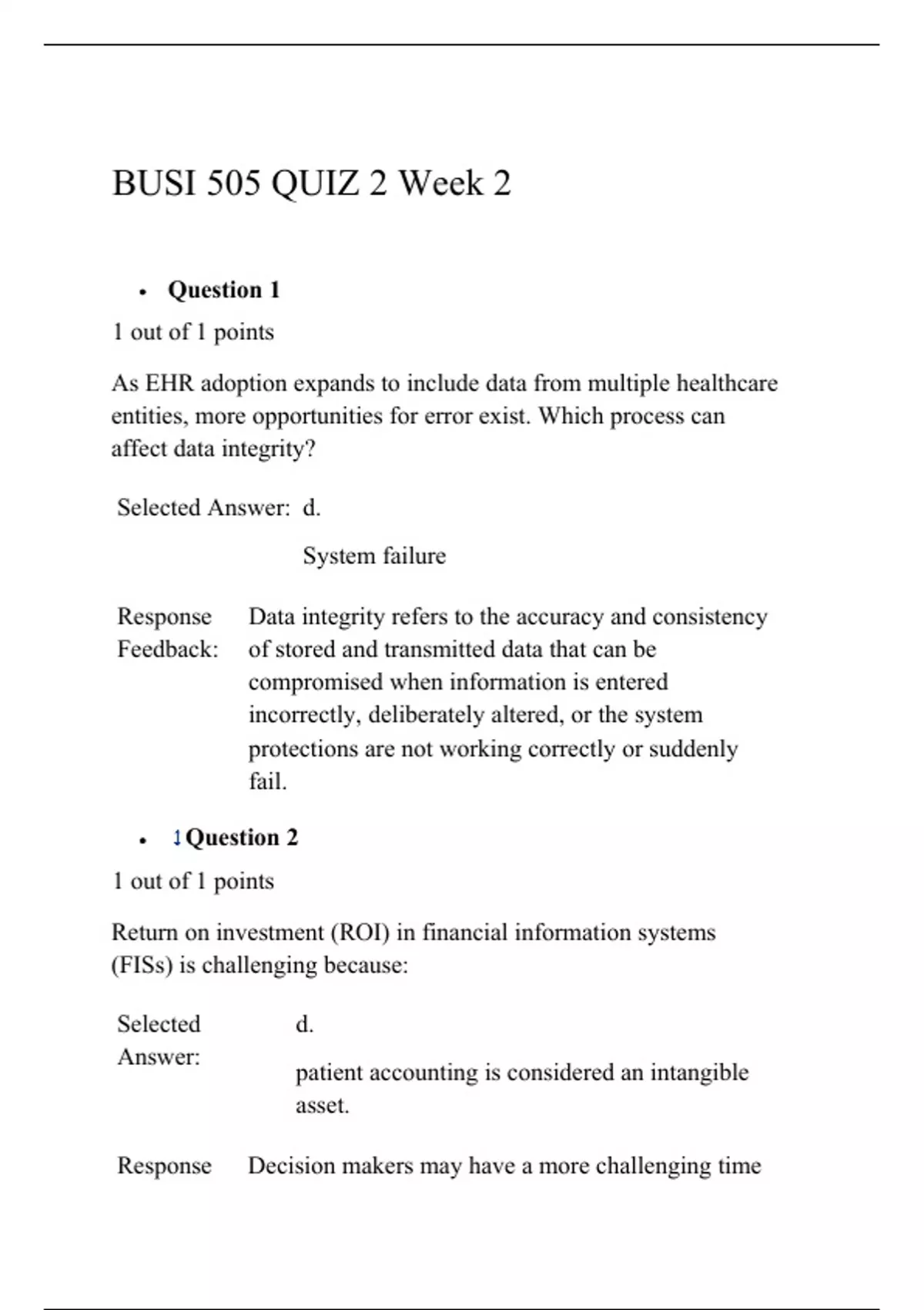 BUSI 505 Quiz 2 (6 Versions), BUSI 505 HEALTH CARE INFORMATICS, Liberty University.