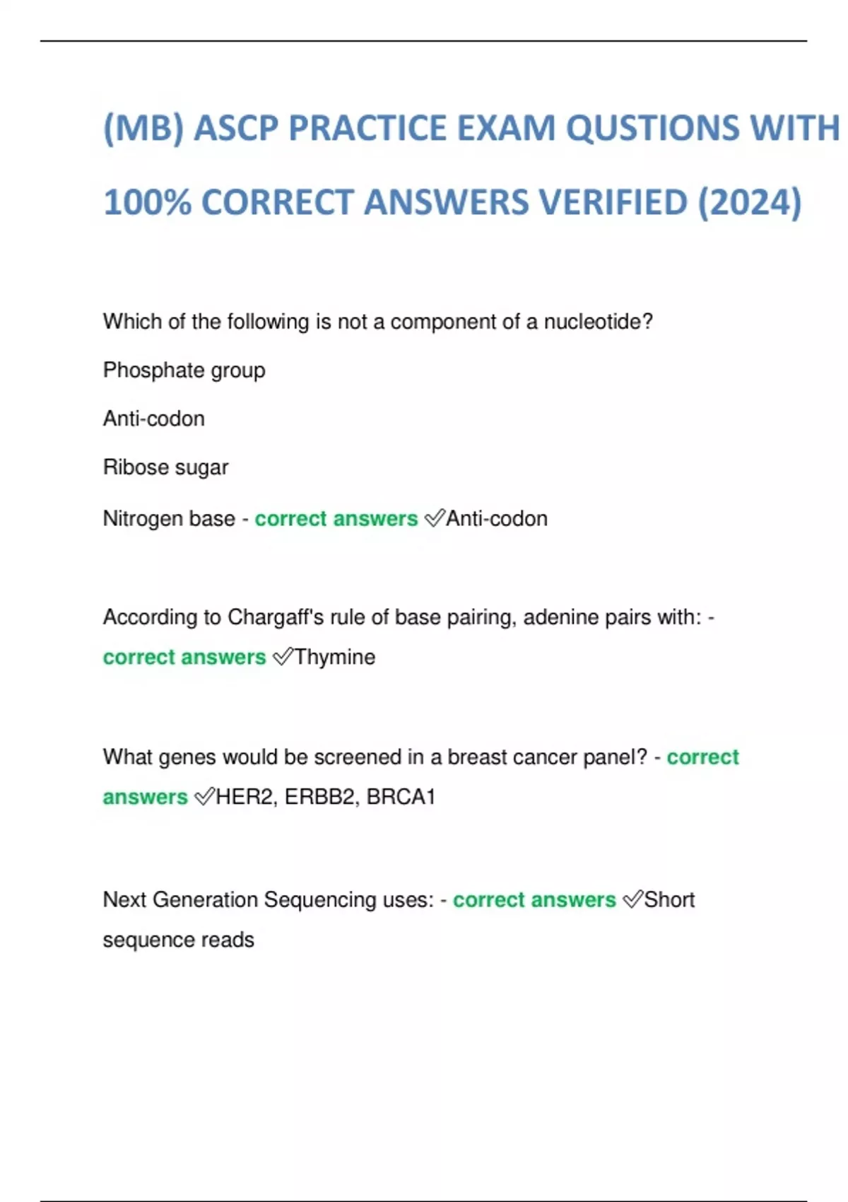 mb ascp practice exam qustions with 100 correct