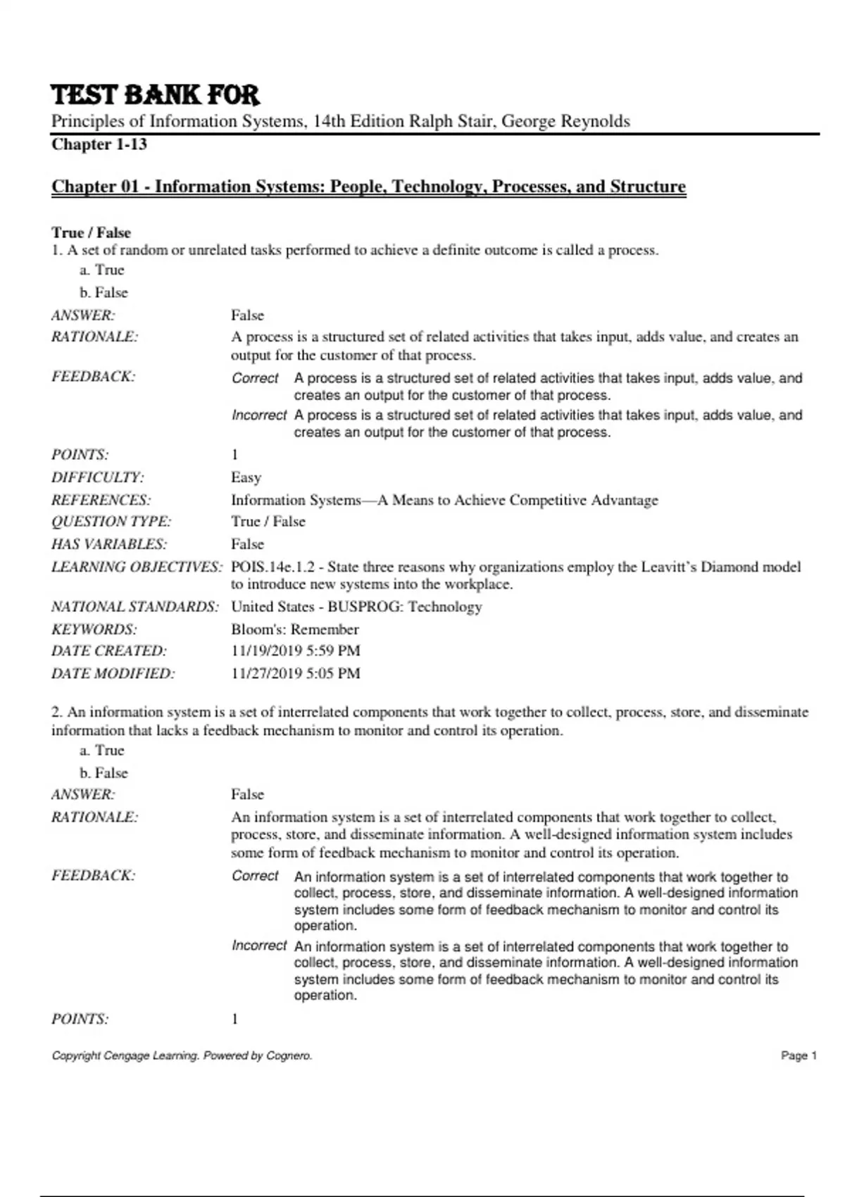 Test Bank For Principles of Information Systems, 14th Edition by Ralph Stair, George Reynolds Chapter 1-13