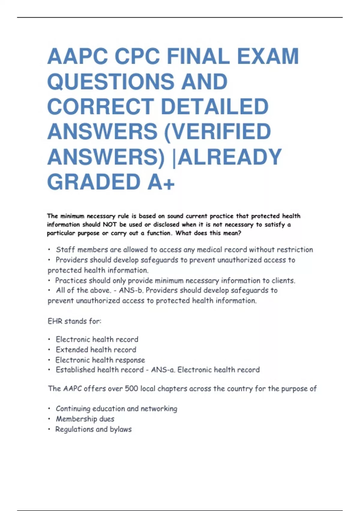AAPC CPC FINAL EXAM QUESTIONS AND CORRECT DETAILED ANSWERS (VERIFIED ANSWERS) ALREADY GRADED A+