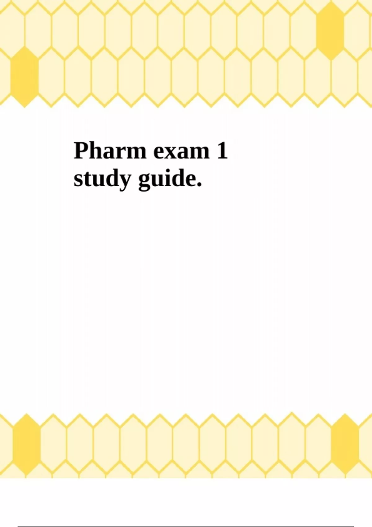 Pharm exam 1 study guide.Detailed work, solutions, memos, notes, and explanations
