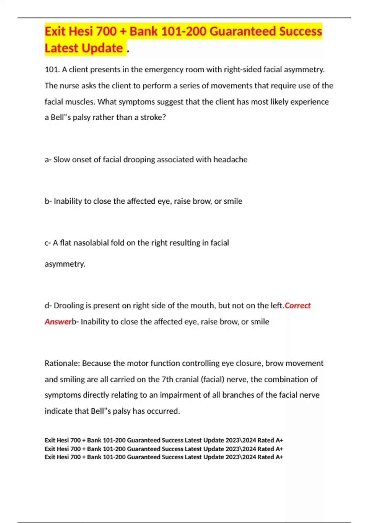Exit Hesi 700 + Bank 101-200 Guaranteed Success Latest Update 2023\2024 Rated A+