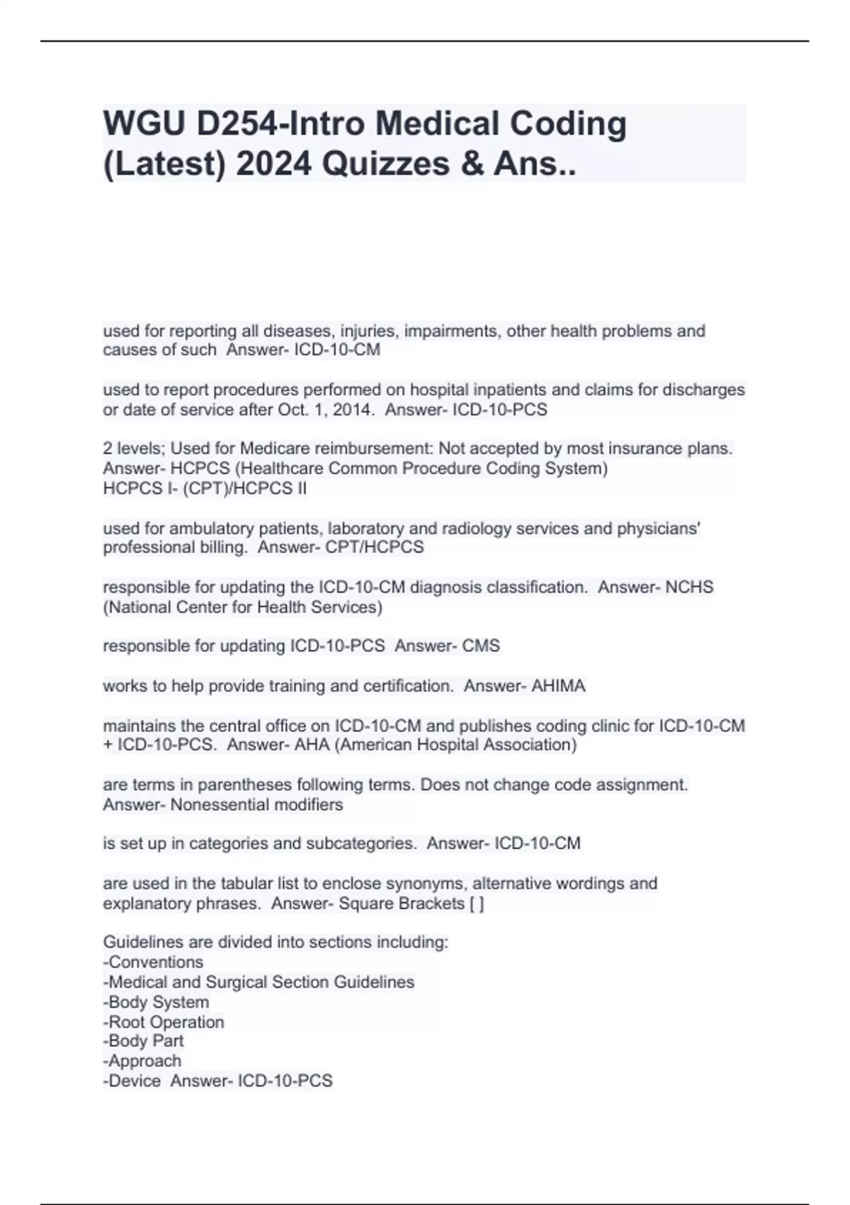 WGU D254-Intro Medical Coding (Latest) 2024 Quizzes & Ans..