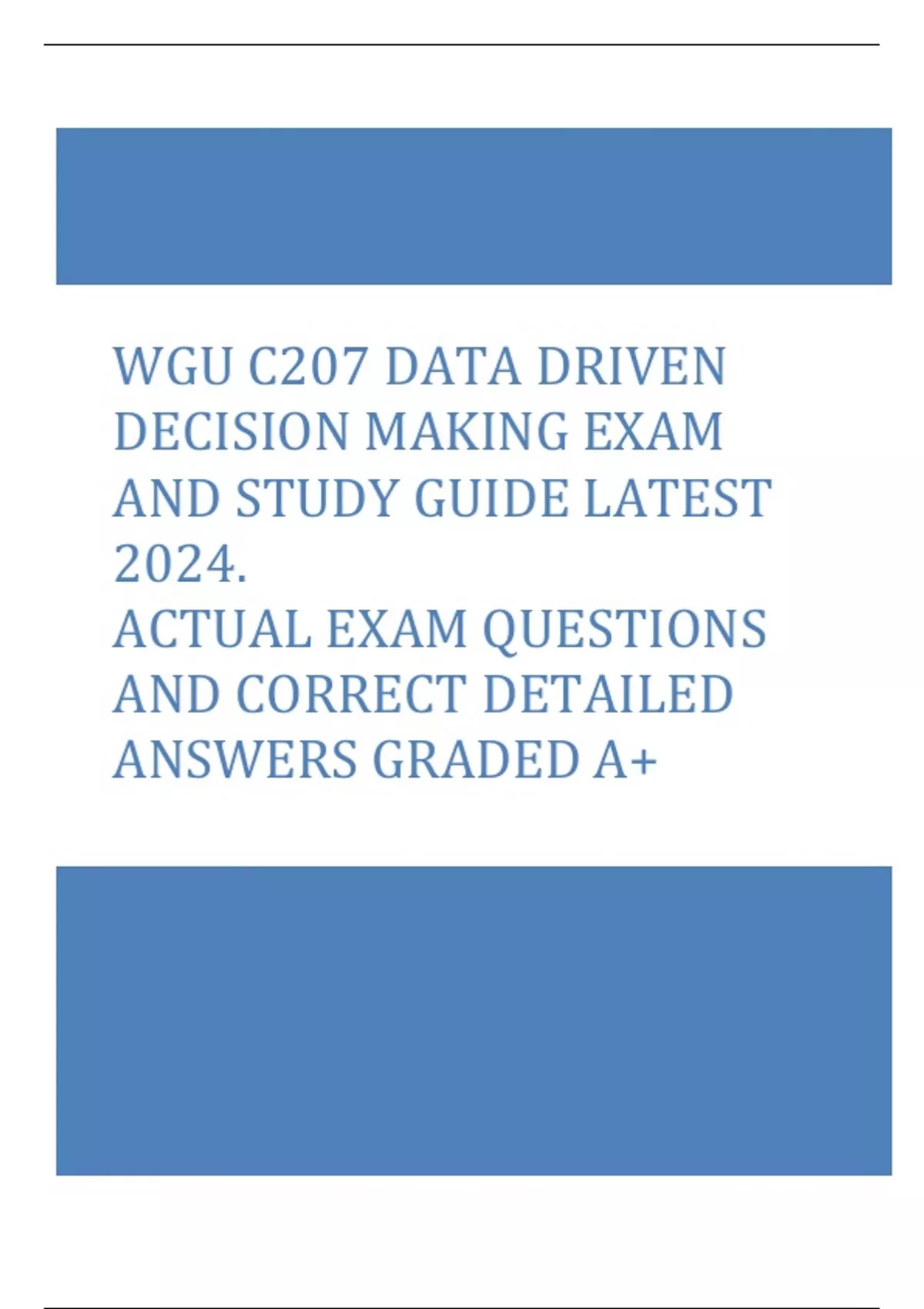 WGU C207 DATA DRIVEN DECISION MAKING EXAM AND STUDY GUIDE LATEST 2024. ACTUAL EXAM QUESTIONS AND CORRECT DETAILED ANSWERS |ALREADY GRADED A+