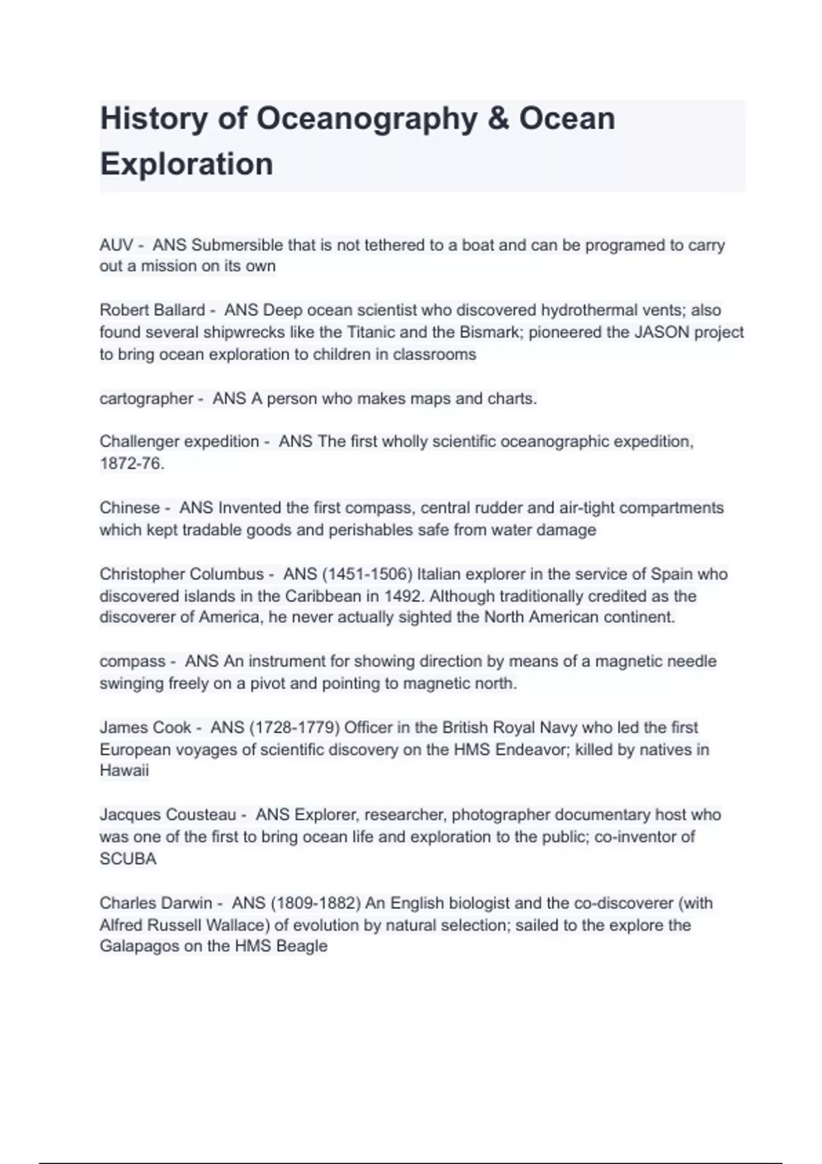 History of Oceanography & Ocean Exploration Questions And Answers 2024