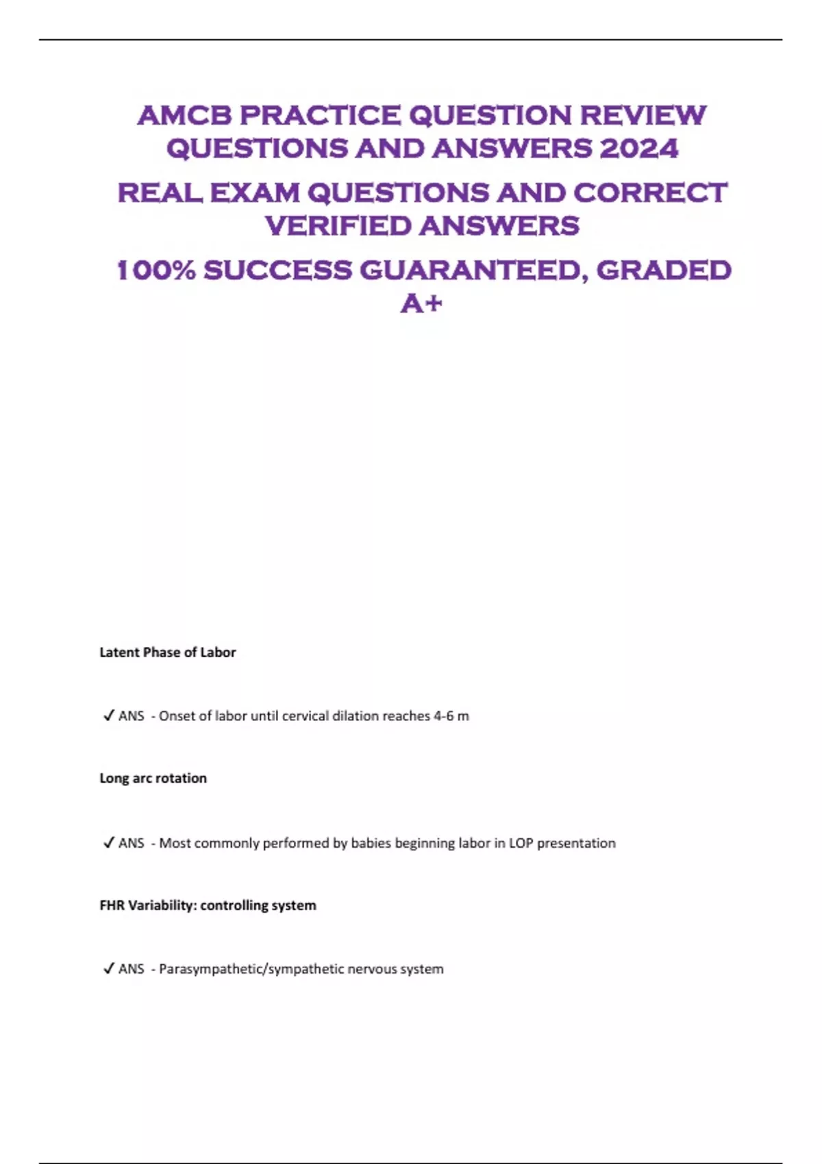 AMCB PRACTICE QUESTION REVIEW QUESTIONS AND ANSWERS 2024 REAL EXAM QUESTIONS AND CORRECT VERIFIED ANSWERS 100% SUCCESS GUARANTEED, GRADED A+