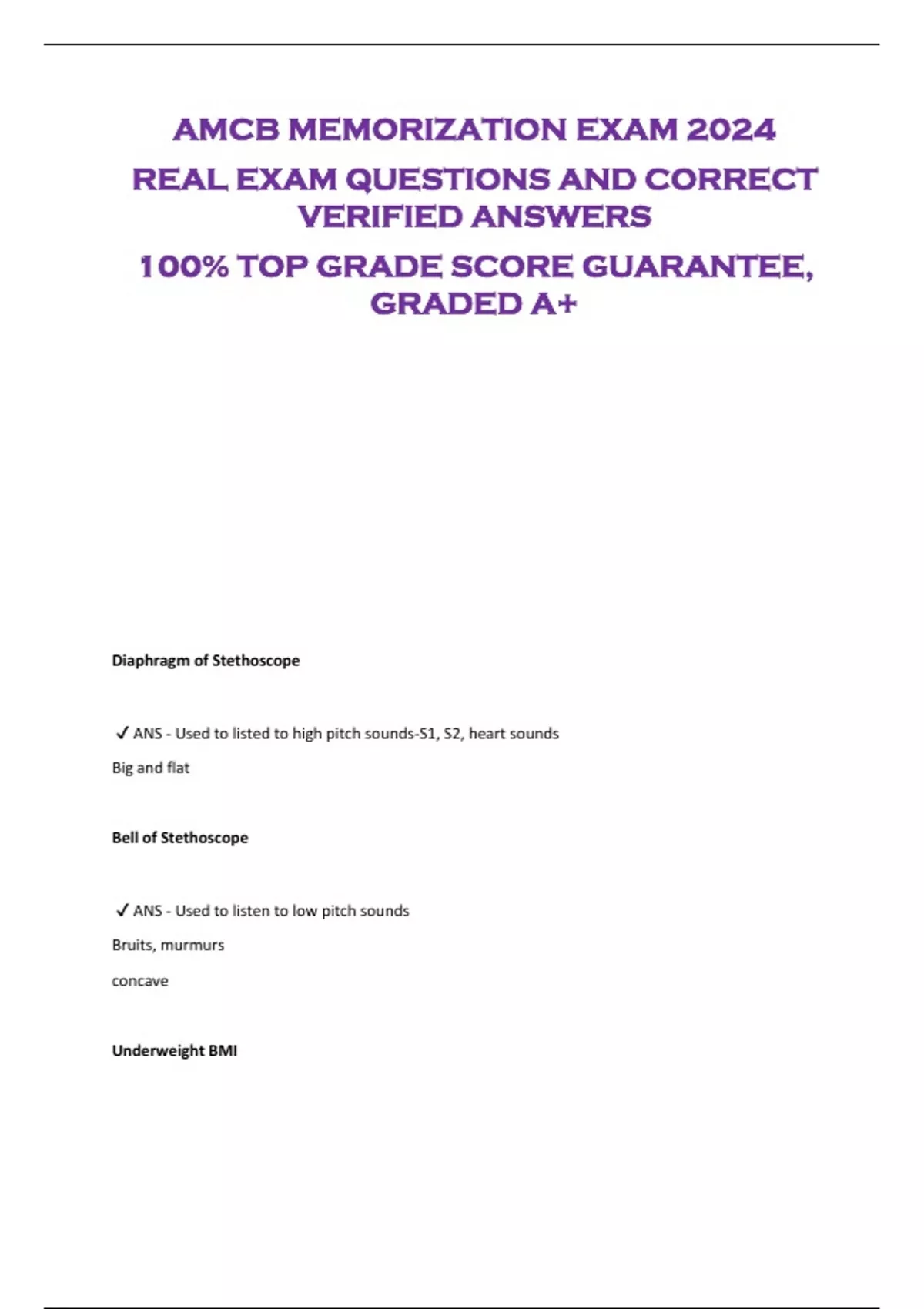 AMCB MEMORIZATION EXAM 2024 REAL EXAM QUESTIONS AND CORRECT VERIFIED ANSWERS 100% TOP GRADE SCORE GUARANTEE, GRADED A+