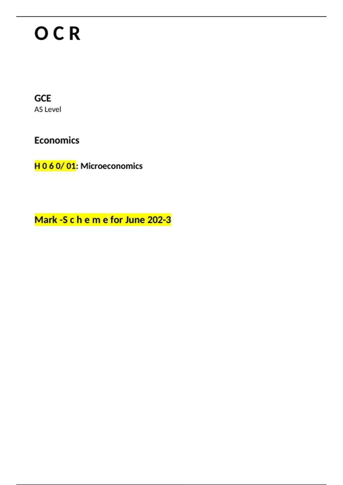 OCR AS Level Economics paper 1 Mark-scheme June 202-3