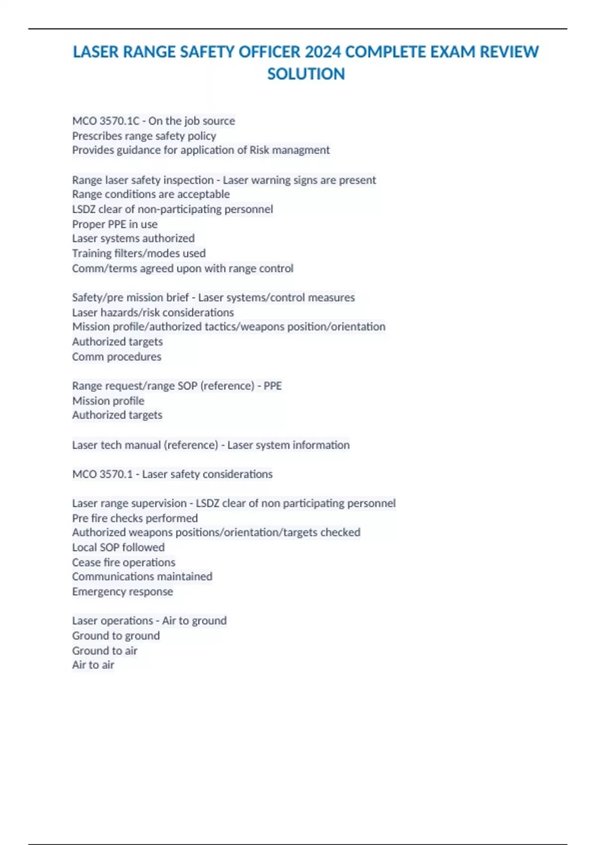 LASER RANGE SAFETY OFFICER 2024 COMPLETE EXAM REVIEW SOLUTION