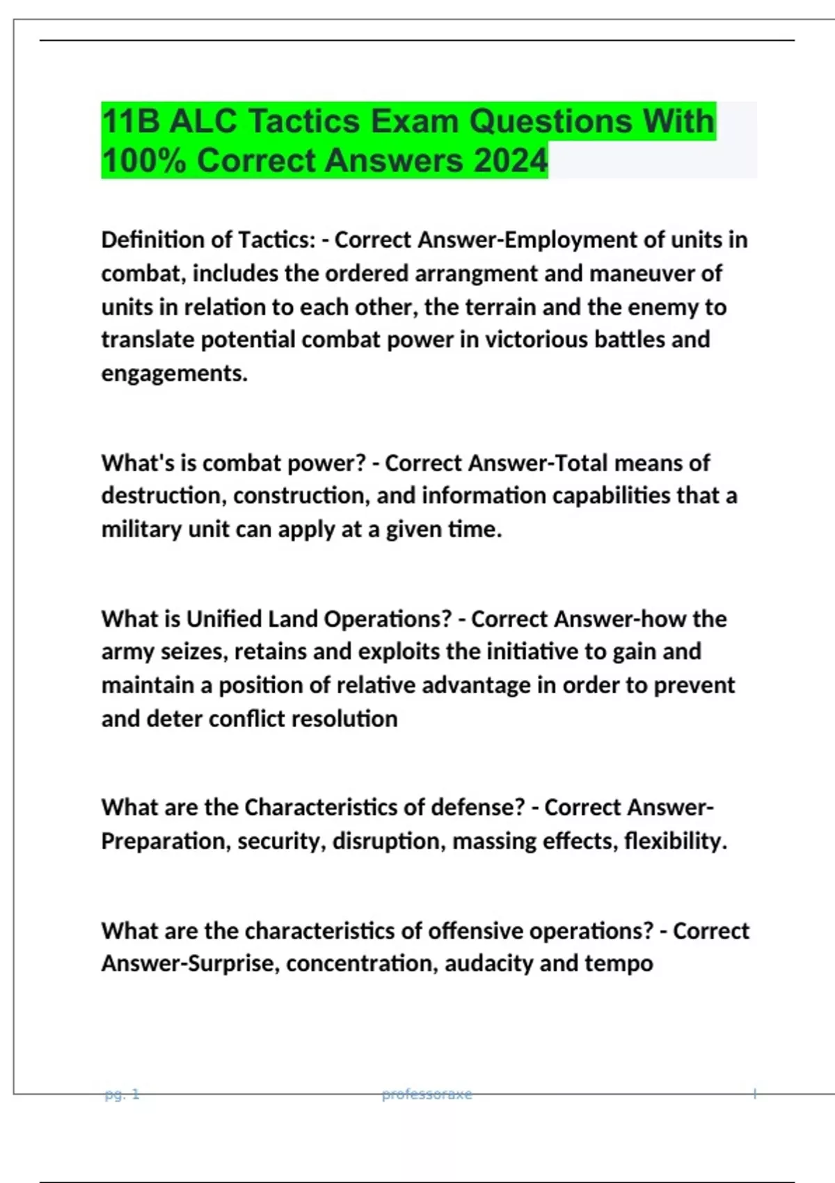 11B ALC Tactics Exam Questions With 100% Correct Answers 2024