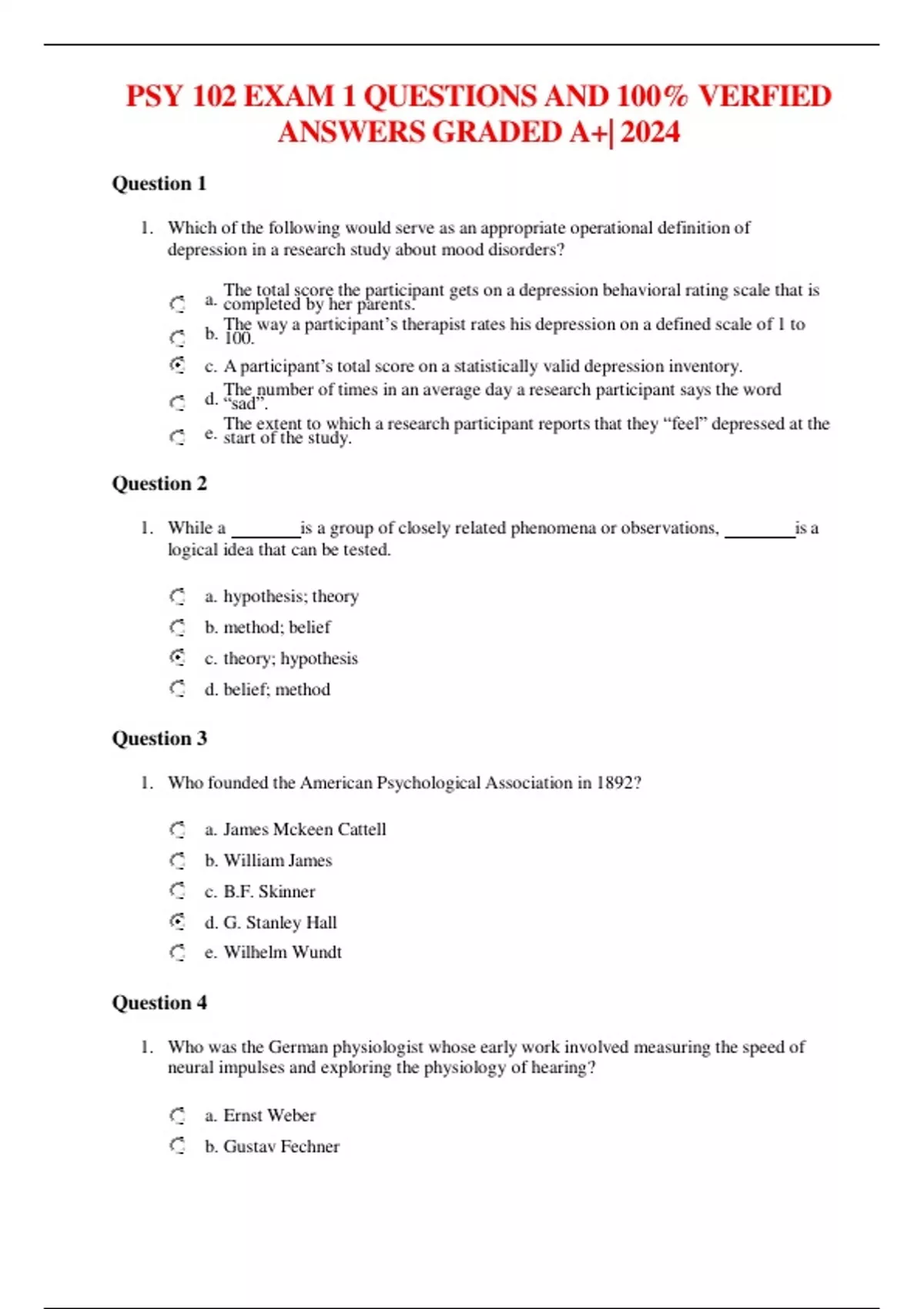 PSY 102 EXAM 1 QUESTIONS AND 100% VERFIED ANSWERS GRADED A+| 2024
