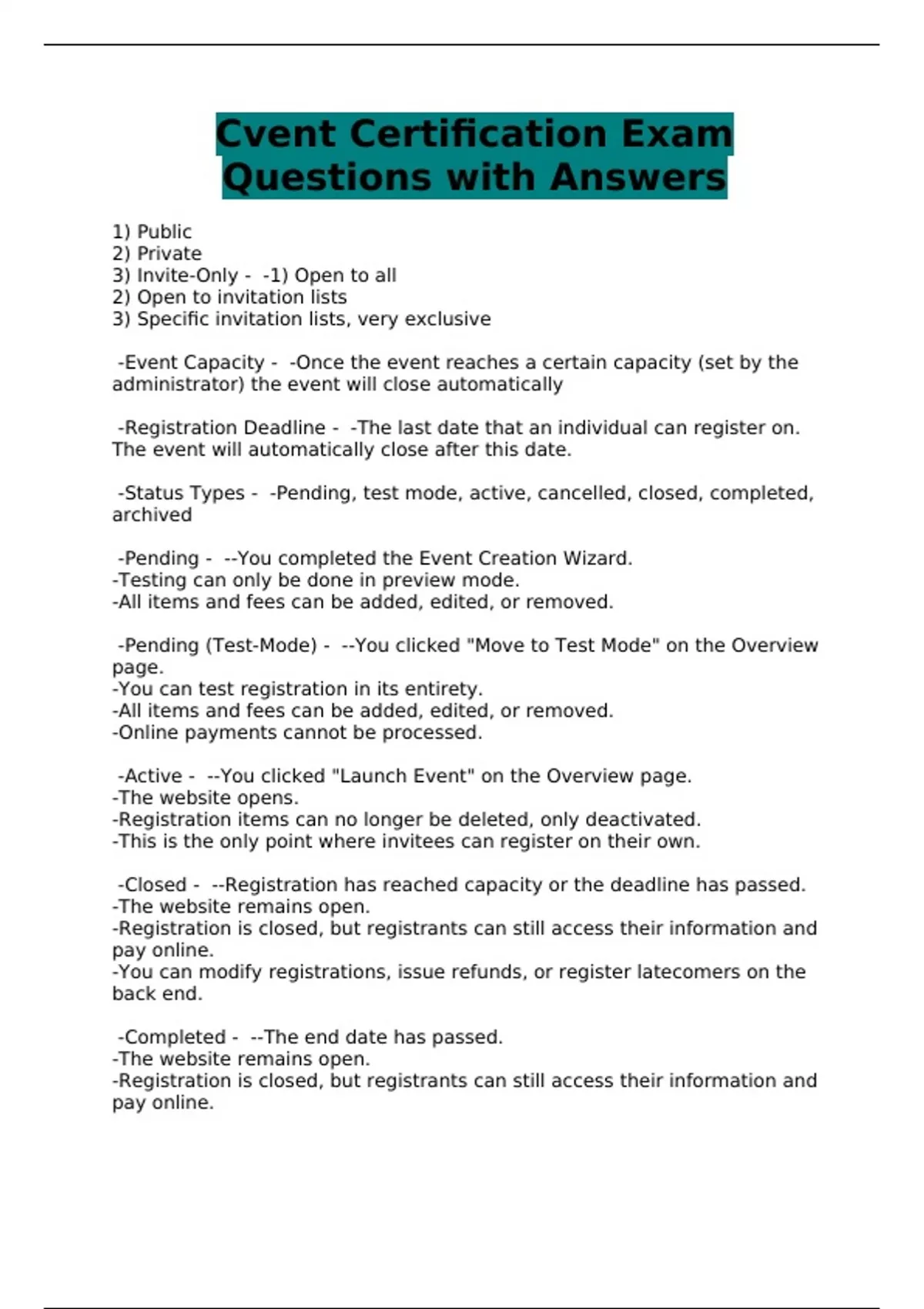 Cvent Certification Exam