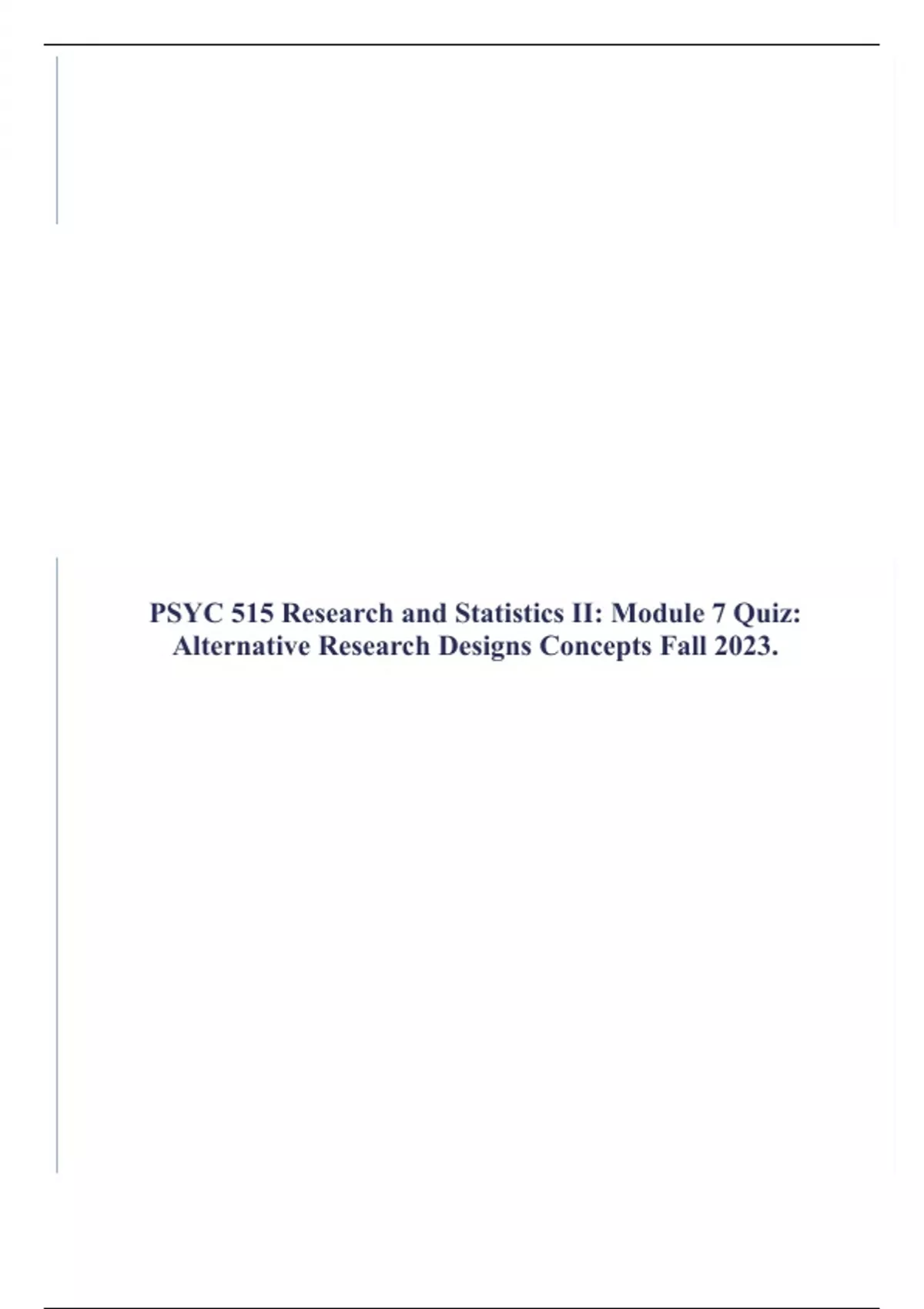 PSYC 515 Research and Statistics II: Module 7 Quiz: Alternative Research Designs Concepts Fall 2023.