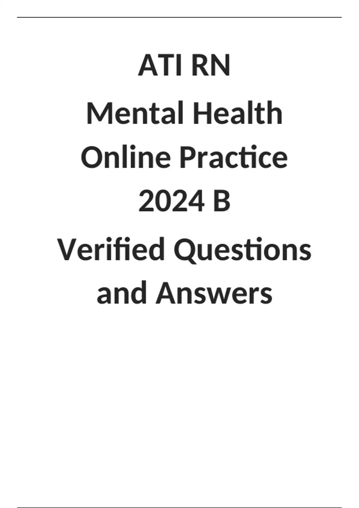 ATI RN Mental Health Online Practice 2024 B Verified Questions and Answers
