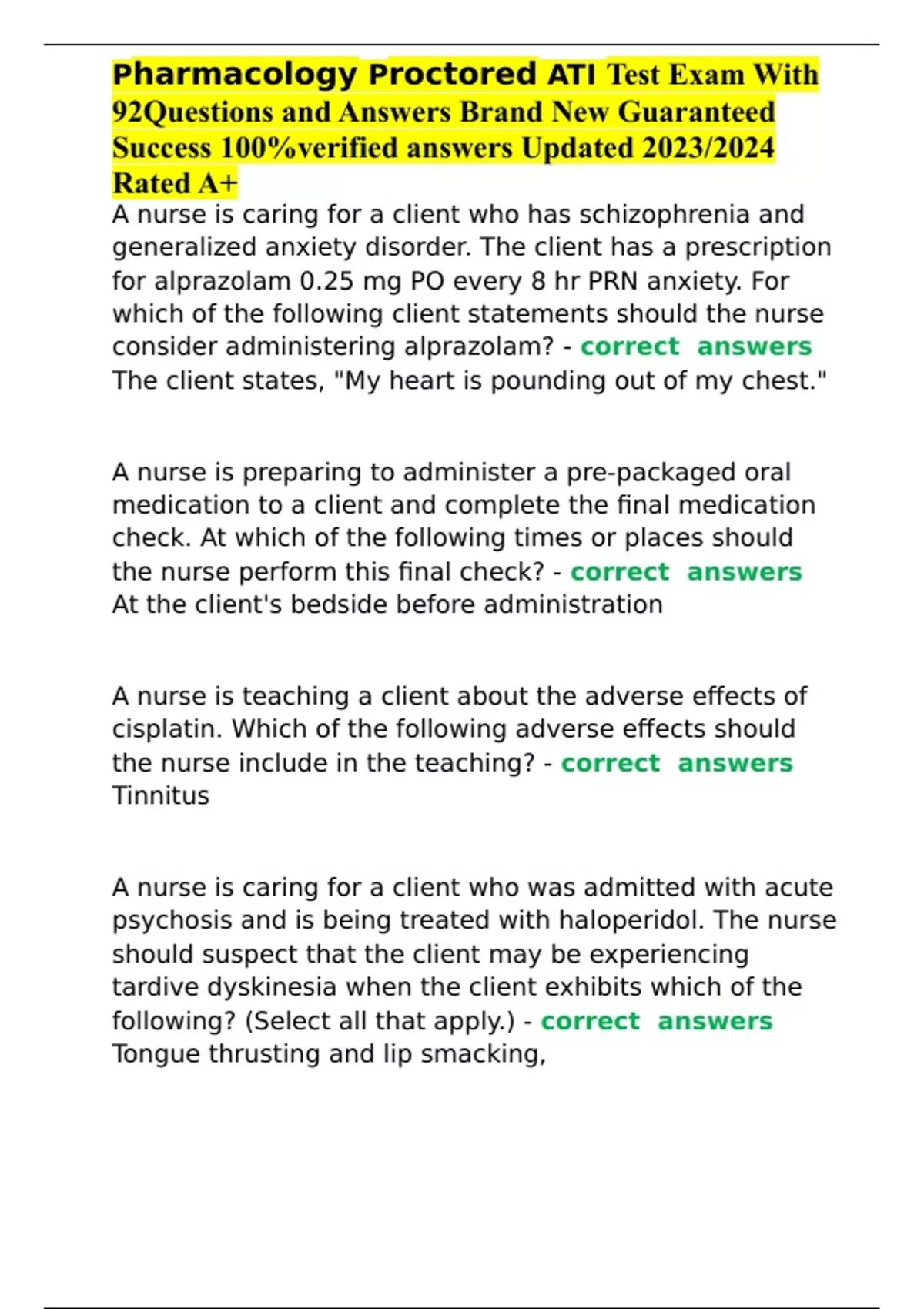 Pharmacology Proctored ATI Test Exam With 92Questions and Answers Brand New Guaranteed Success 100%verified answers Updated 2023/2024 Rated A+