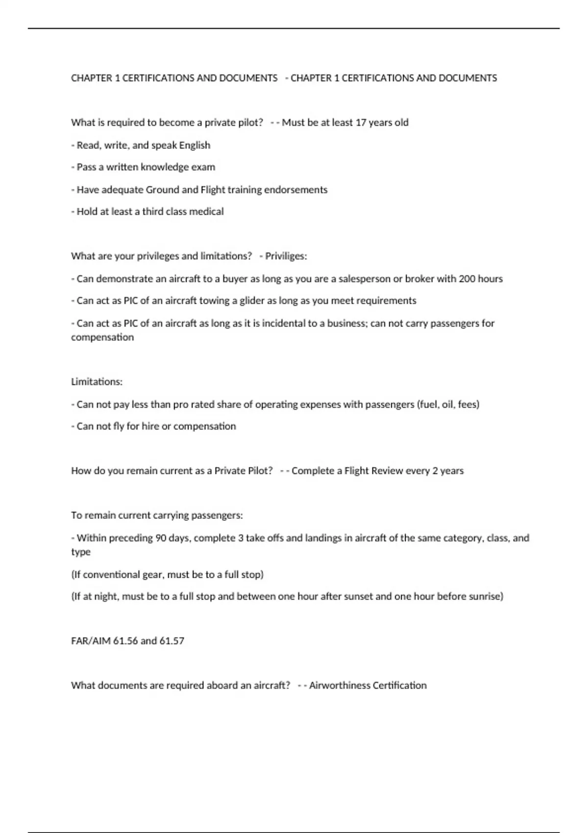 Private Pilot Checkride Oral Questions and Answers 2024/2025 with complete solution