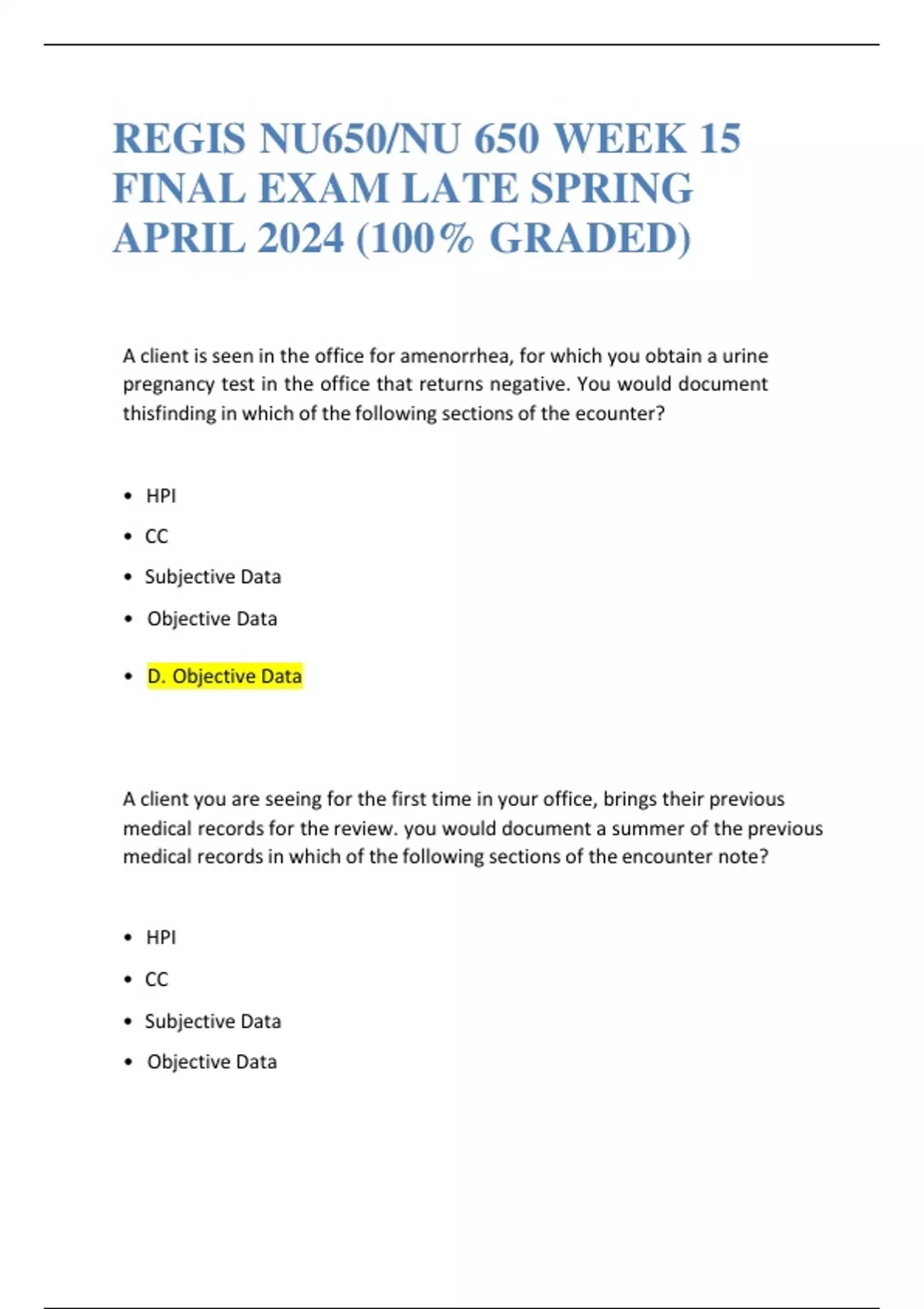 REGIS NU650NU 650 WEEK 15 FINAL EXAM LATE SPRING APRIL 2024 (100% GRADED)