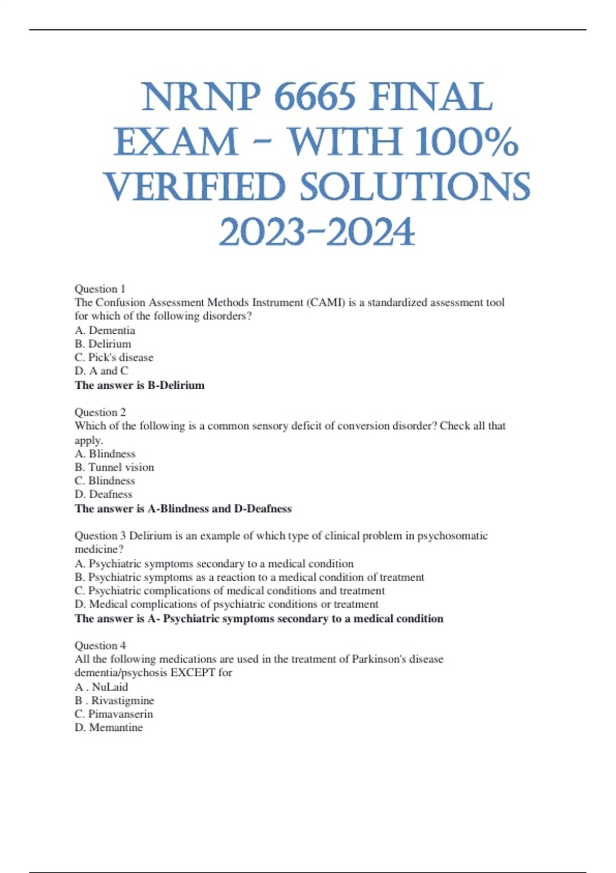 NRNP 6665 FINAL EXAM - WITH 100% VERIFIED SOLUTIONS