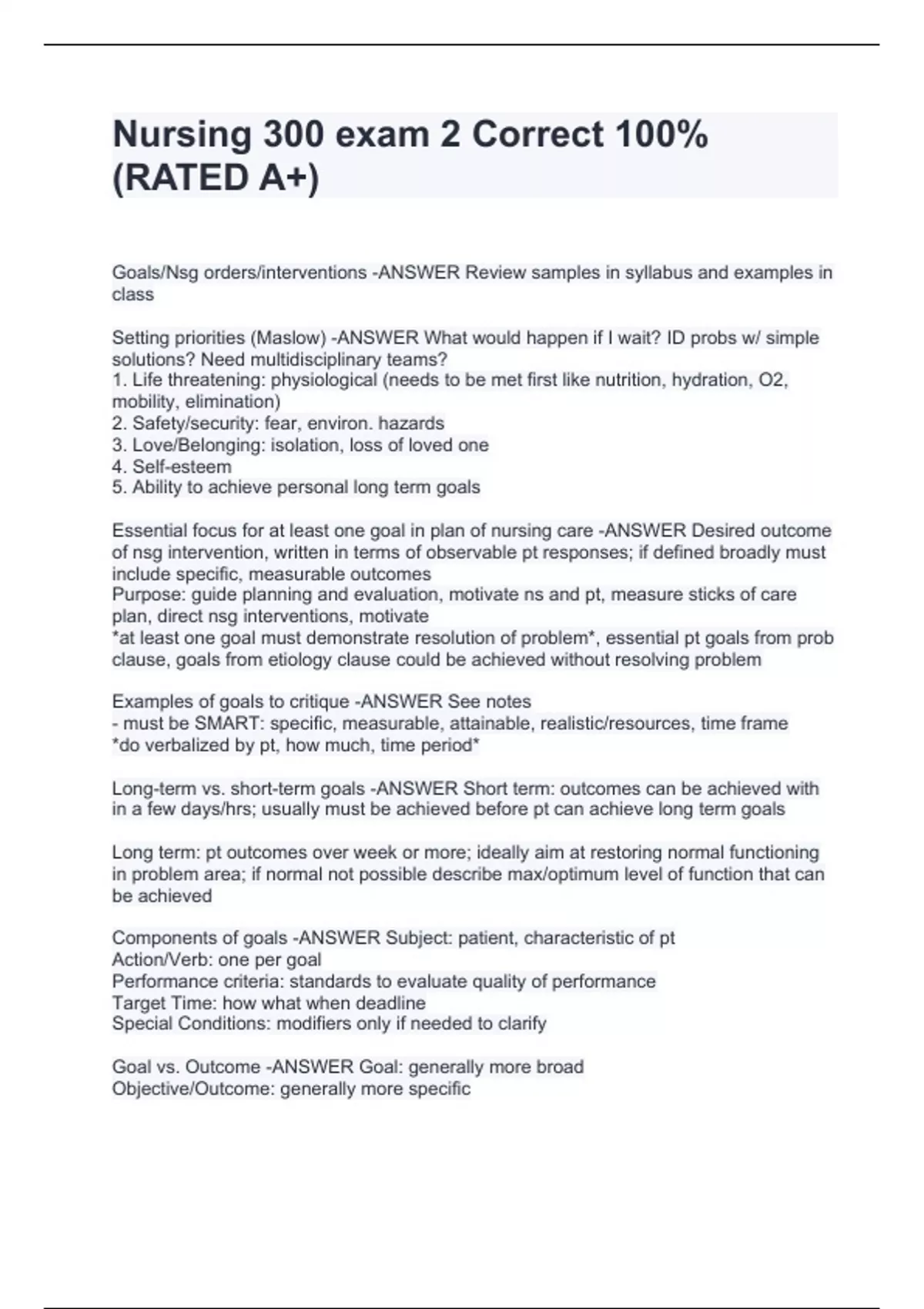nursing 300 exam 2 correct stuvia