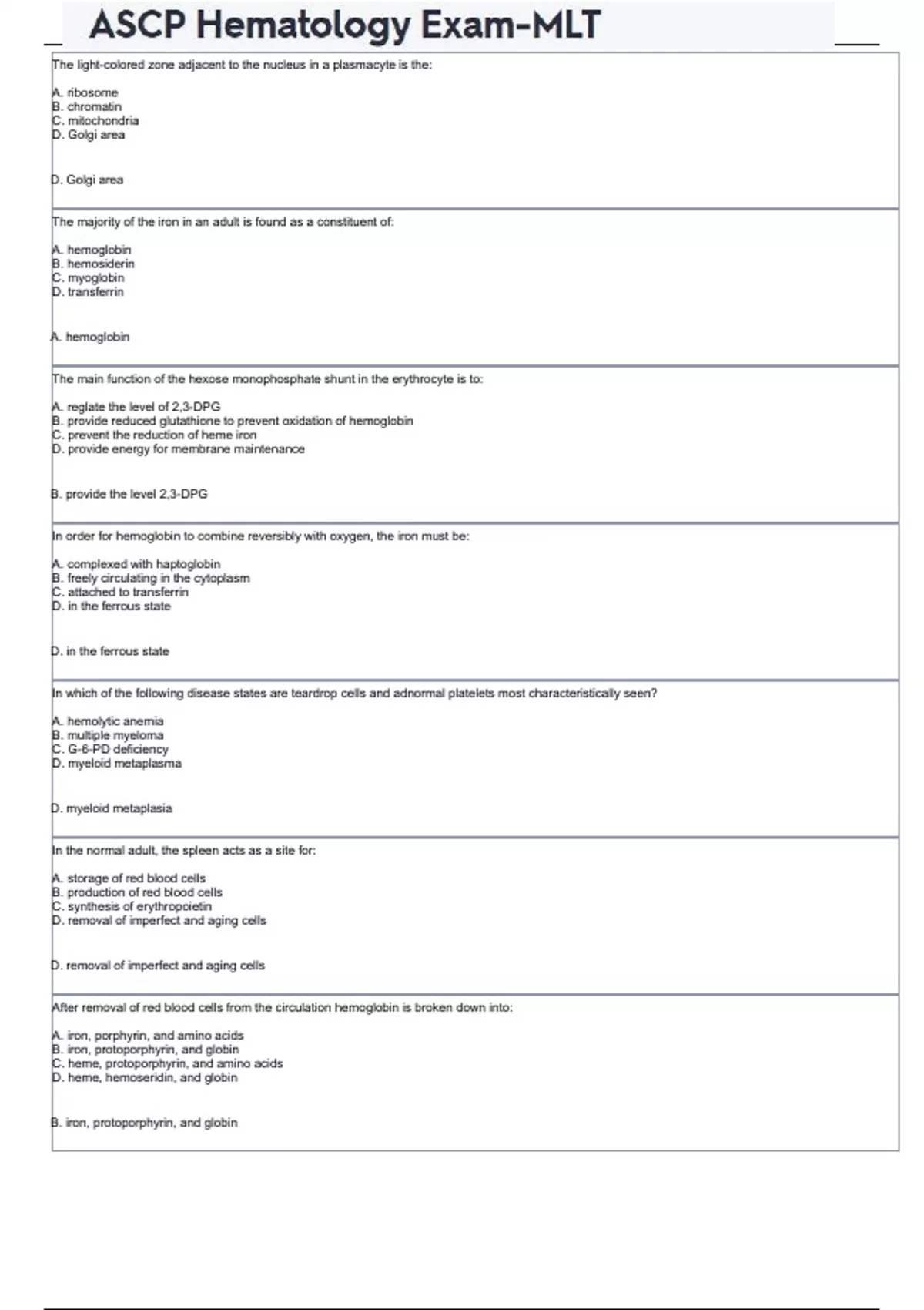 Actual & 100% Correct answers for ASCP Hematology Exam-MLT