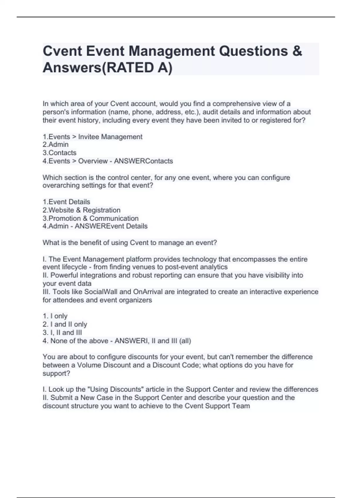 Cvent Event Management Questions & Answers(RATED A)