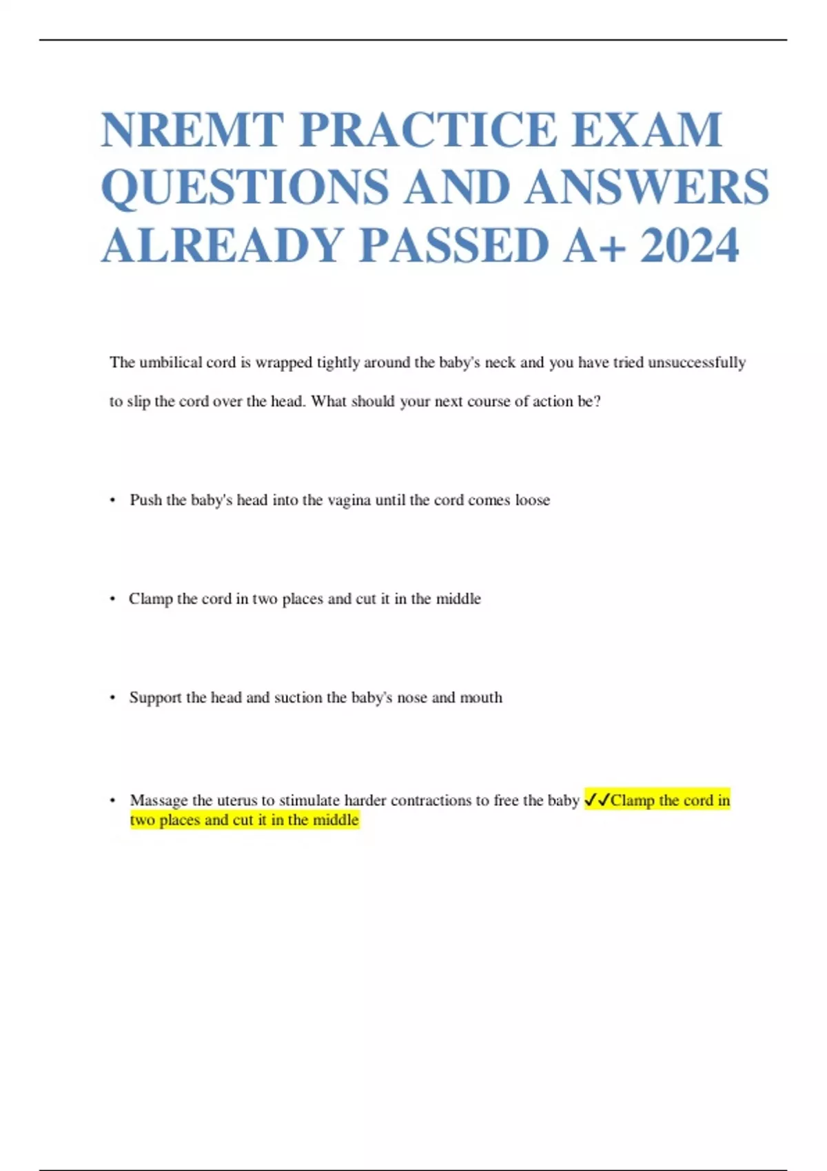 NREMT PRACTICE EXAM QUESTIONS AND ANSWERS ALREADY PASSED A+ 2024