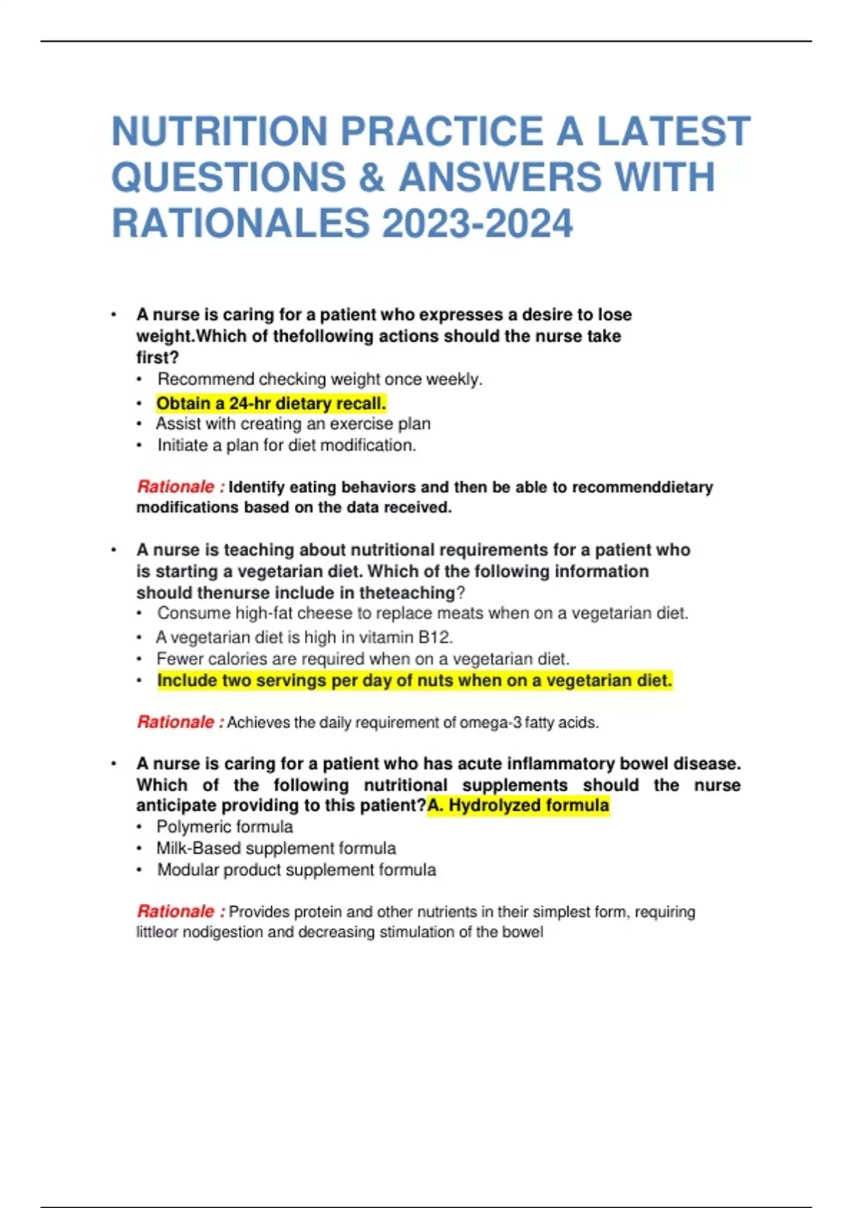 NUTRITION PRACTICE A LATEST QUESTIONS & ANSWERS WITH RATIONALES