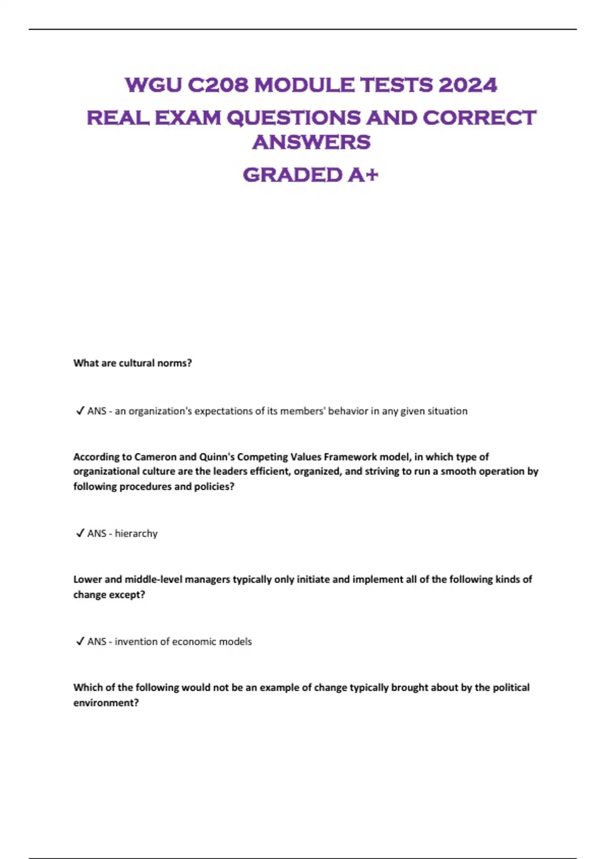 WGU C208 MODULE TESTS 2024 REAL EXAM QUESTIONS AND CORRECT ANSWERS GRADED A+