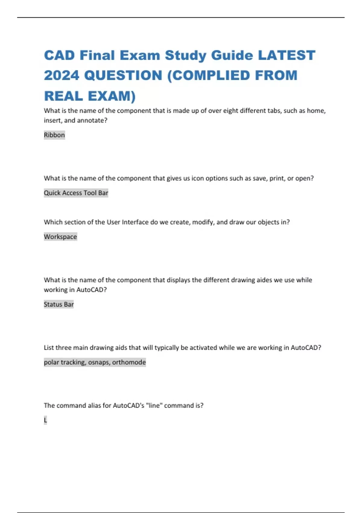 CAD Final Exam Study Guide LATEST 2024 QUESTION (COMPLIED FROM REAL EXAM)